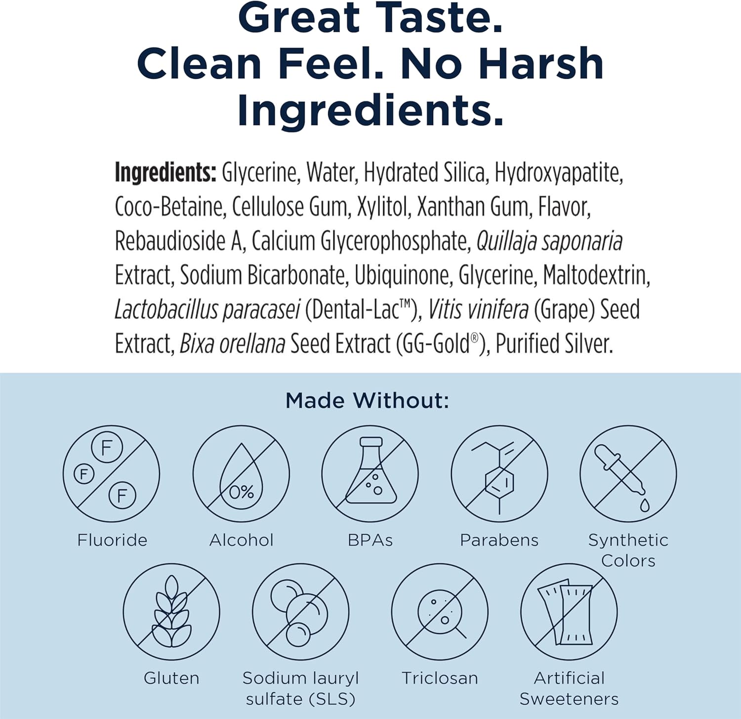 - Whitening Hydroxyapatite, Suitable for Sensitive Teeth - This non fluoride toothpaste formulated with the most unique combination of ingredients to support tooth enamel strength, overall oral health, gum health and a sparkling, brighter smile.