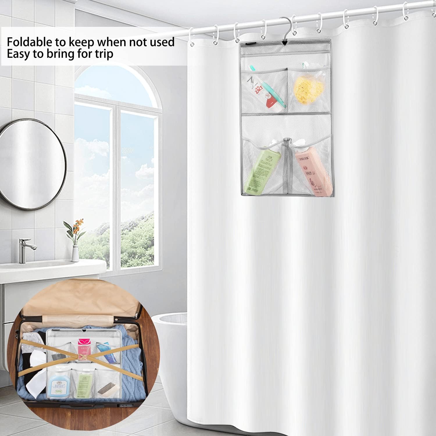 - Hanging shower caddy is made of high quality breathable nylon mesh, sturdy and tear resistant material for long time using. Dry quickly, no more slime in the shower room and can be washed when dirty.