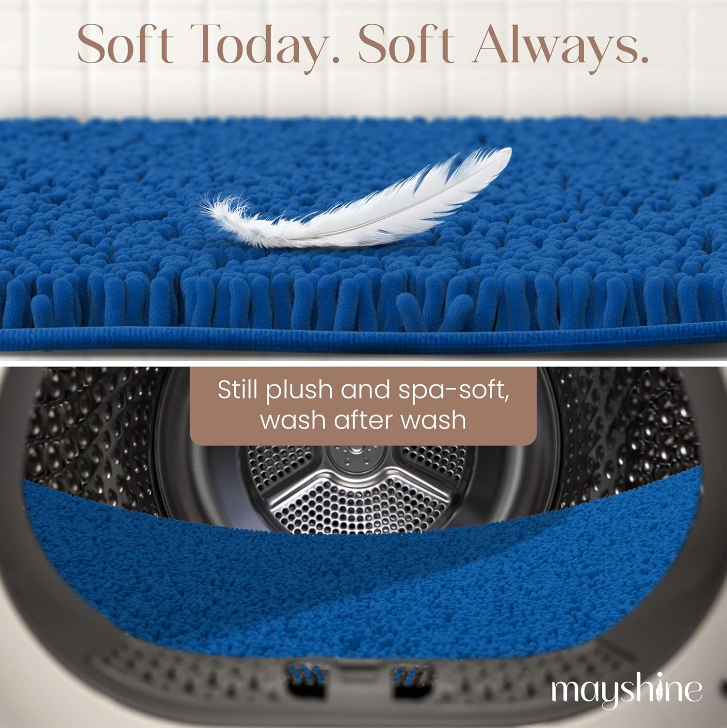 MAYSHINE Chenille Plush Runner Rug, Dark Blue, 71x31 in, Machine Washable, Non-Slip Door Mat, Bath Mat with Water Absorbent Quick Drying Microfiber Shag Carpet