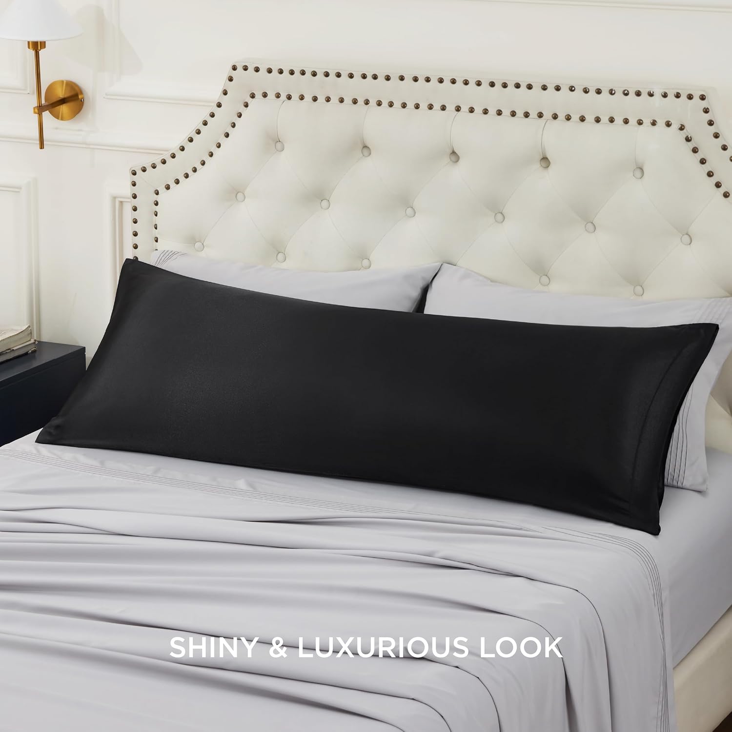 Bedsure Body Pillow Pillowcase - Cooling and Silky Long Body Pillow Covers with Envelope Closure, Satin Similar to Silk Pillowcase for Hair and Skin,Black,20x54 Inches