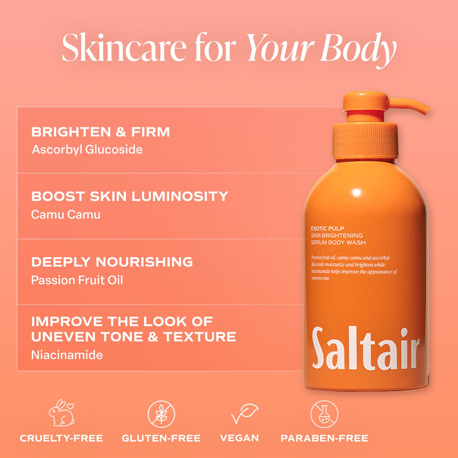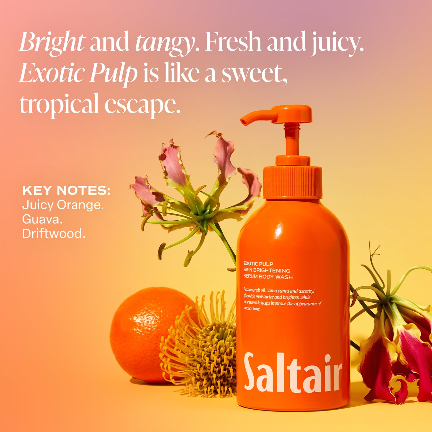 Saltair Body Wash, Exotic Pulp 2-Pack. Moisturizing Body Cleanser with Monoi Oil and Cupuacu Butter. Luxury Shower Gel for Women. Vegan, Cruelty-Free, Paraben-Free. 2x 17oz Pump Bottles.