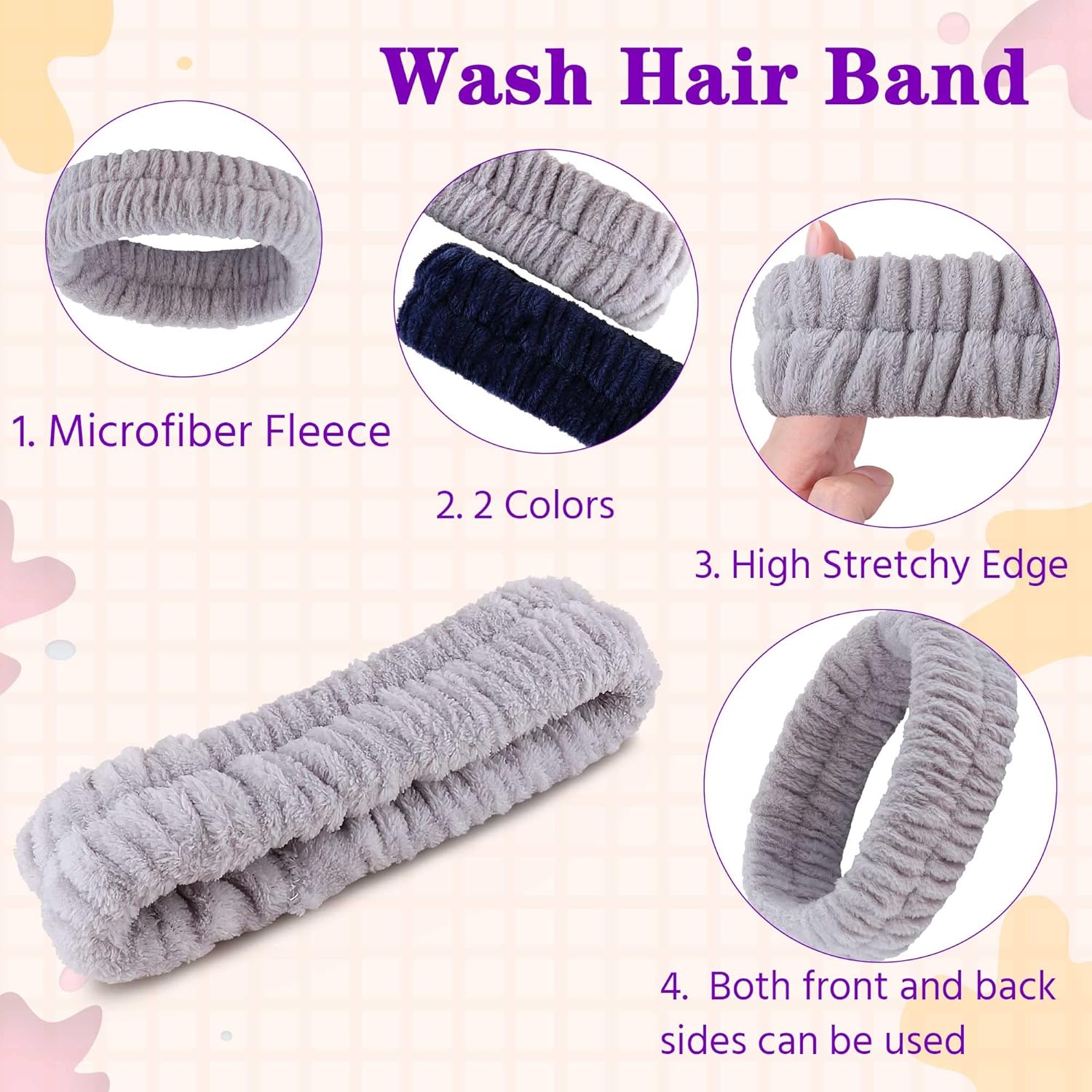 - Soft Fluffy Material of spa headband: Our face headband is made of premium elastic microfiber fleece, ridiculously soft, comfortable, skin-friendly. Washable, ultra absorbent water and fast-drying. Great for doing spa, sports, yoga, face-washing and taking shower, it can keep your hair neat and away from the face, also excellent for makeup,,skin care and so on.