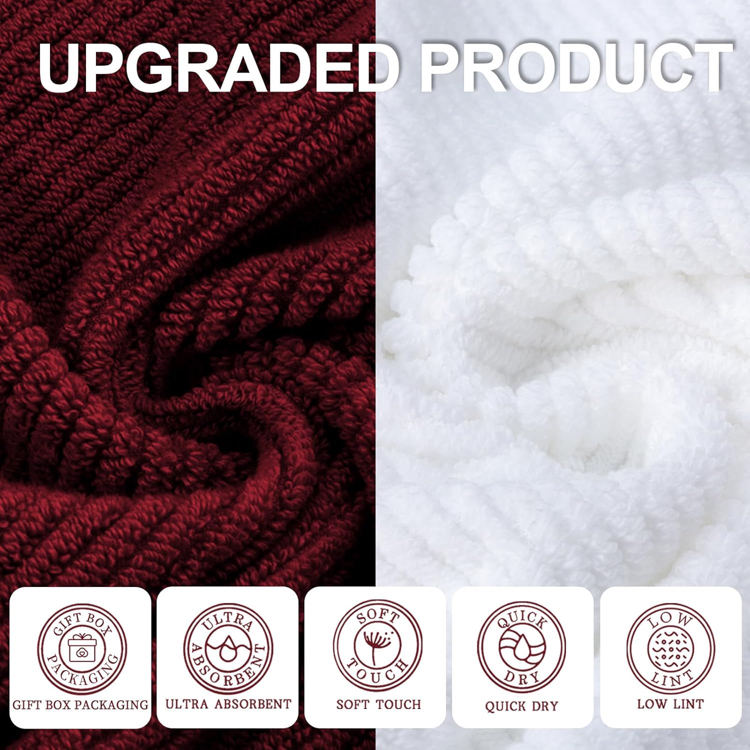 VOOVA & MOVAS Towels Bathroom Set - 100% Cotton | Quick Dry | Soft | Thick, Towel Set of 6, 2 Large Bath 30"x56", 2 Hand 18"x28", 2 Wash Cloths 13"x13", Bathroom Essentials, Burgundy Red and White