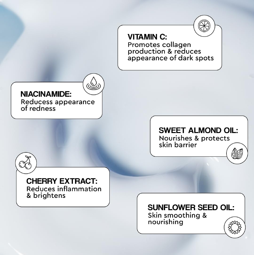- Infused with skincare ingredients like vitamin C, niacinamide and cherry extract to help brighten skin while locking in moisture for all-day hydration