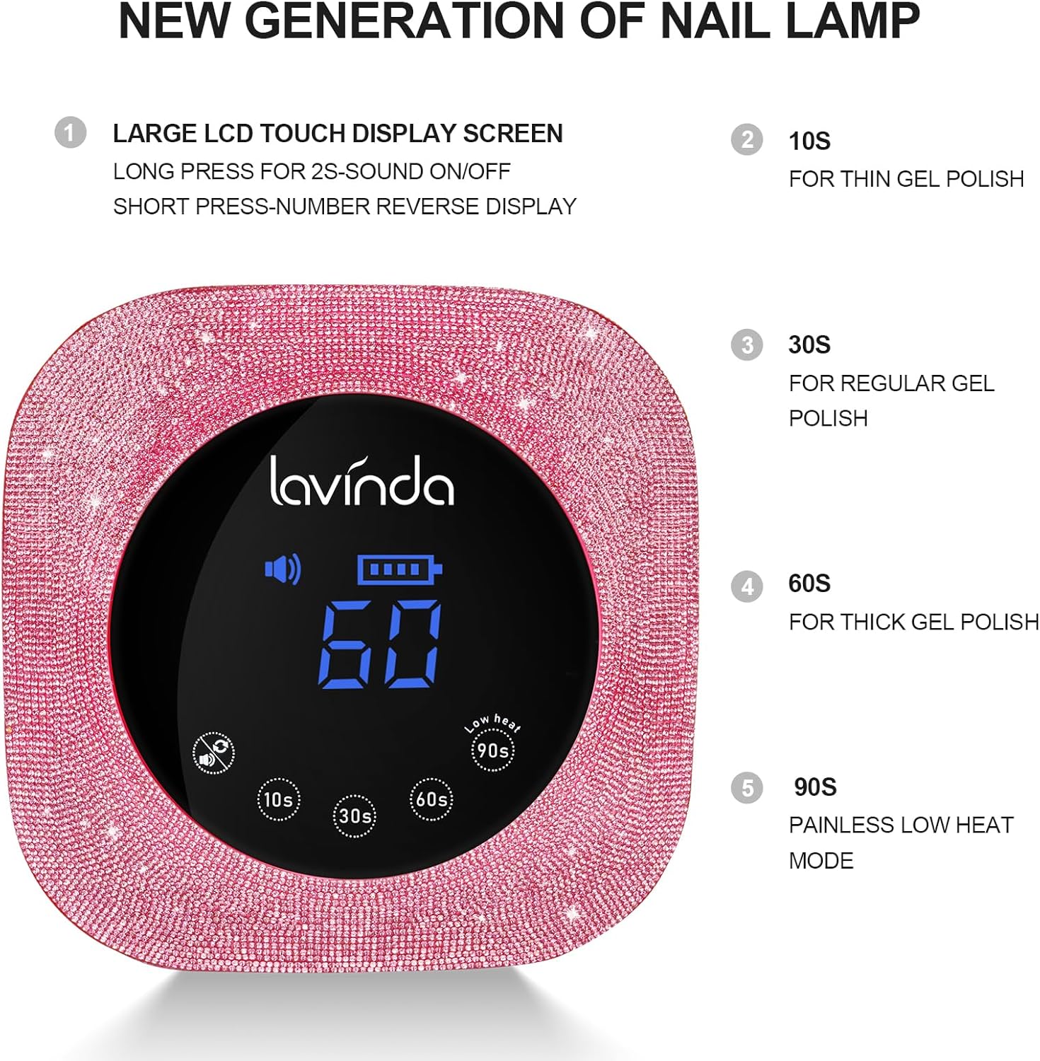- 【Curing All Gel Nail Polishes】This nail dryer can fast cure with all nail gel brands, e.g.Base Coat, Top Coat, Color Gel, Hard Gels, Poly Gels, Builder, Acrylic, Sculpture gel, gem glue, etc.(not for regular nail polish.) Enjoy high-quality salon manicures at home with your friends and family. If you have any problem with Lavinda gel nail lamp, please contact us through "contact sellers", and we will offer you a satisfactory solution within 24 hours.