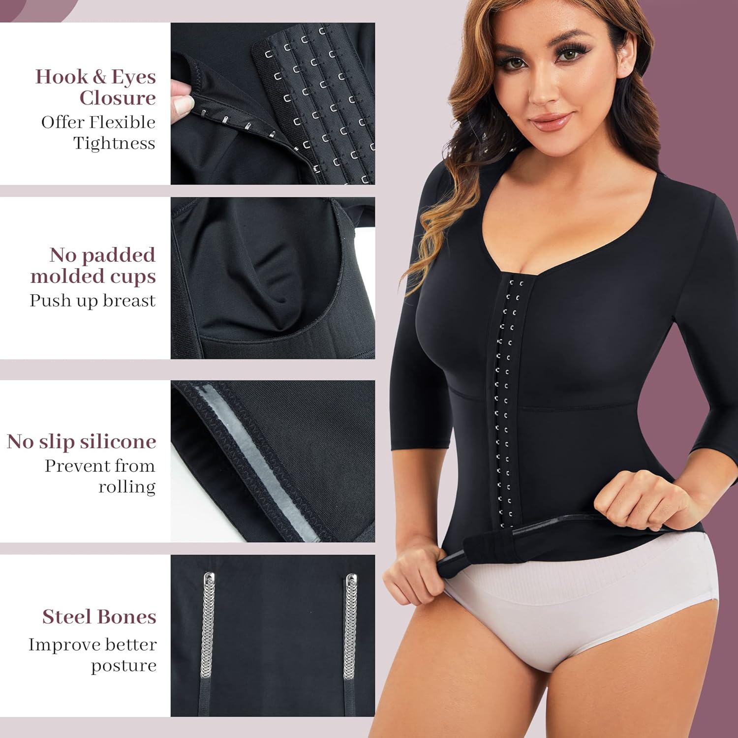 - 3/4 Sleeve Arm Slimmer: Seamless arm shaper offers upper arm compression to smooth arm fat, tight flabby arm& loose skin, remove swelling, speed up healing process from post lipo. Arm girdles for women it’s comfy& offer firm support still allow flexibility in the joints, reduce arm lines. post surgery compression garment has 2 flexible bones on the back to keep your back straight& improve your posture. It completely covers your back, gives firm back support, smooths back bulge& relief back pain.