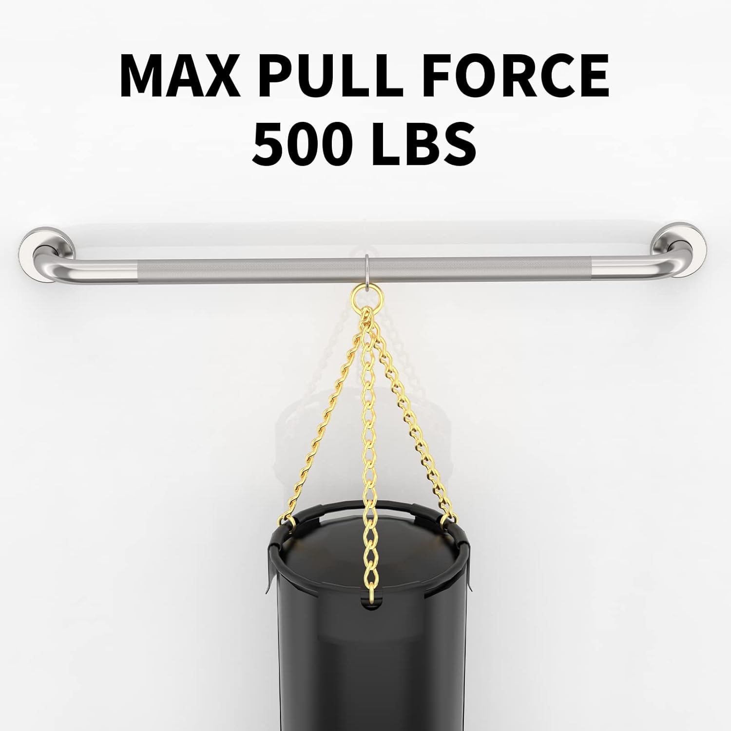 - Munzong 36 inch knurled surface bathroom shower grab bars 1.25 inch diameter are able to support up to 500 lbs of pull force to provide a stable, reliable handhold; Made of anti-rust stainless steel for a lasting strength and quality.
