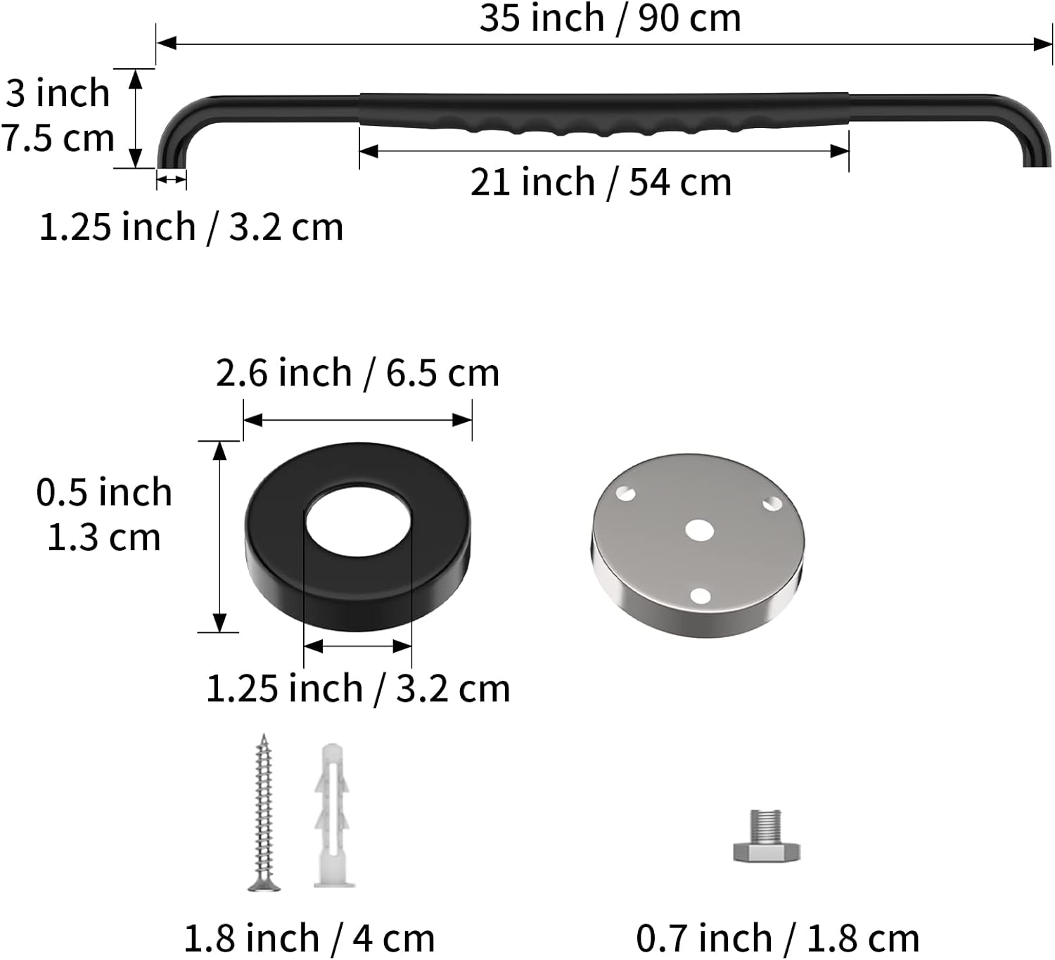 - Use 36 inch anti slip safety grab bars in the bathroom, kitchen, along stairways, or in the laundry room for additional fall prevention, especially for the handicap, elderly, pregnant women, and children. Not only apply to use as bath shower grab bar, but also can hold clothing,etc.