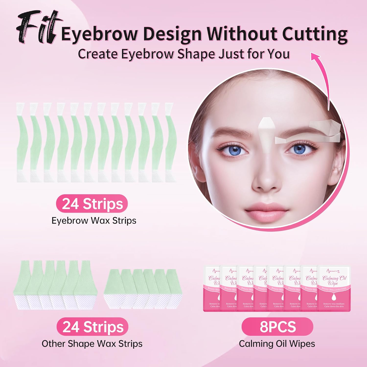 - Package Included: 24 Wax strips(12 double-side, including 6 pairs of eyebrow wax strips and 6 pairs of other shape wax strips), 4 Calming Oil Wipes. Shelf life for 3 years.