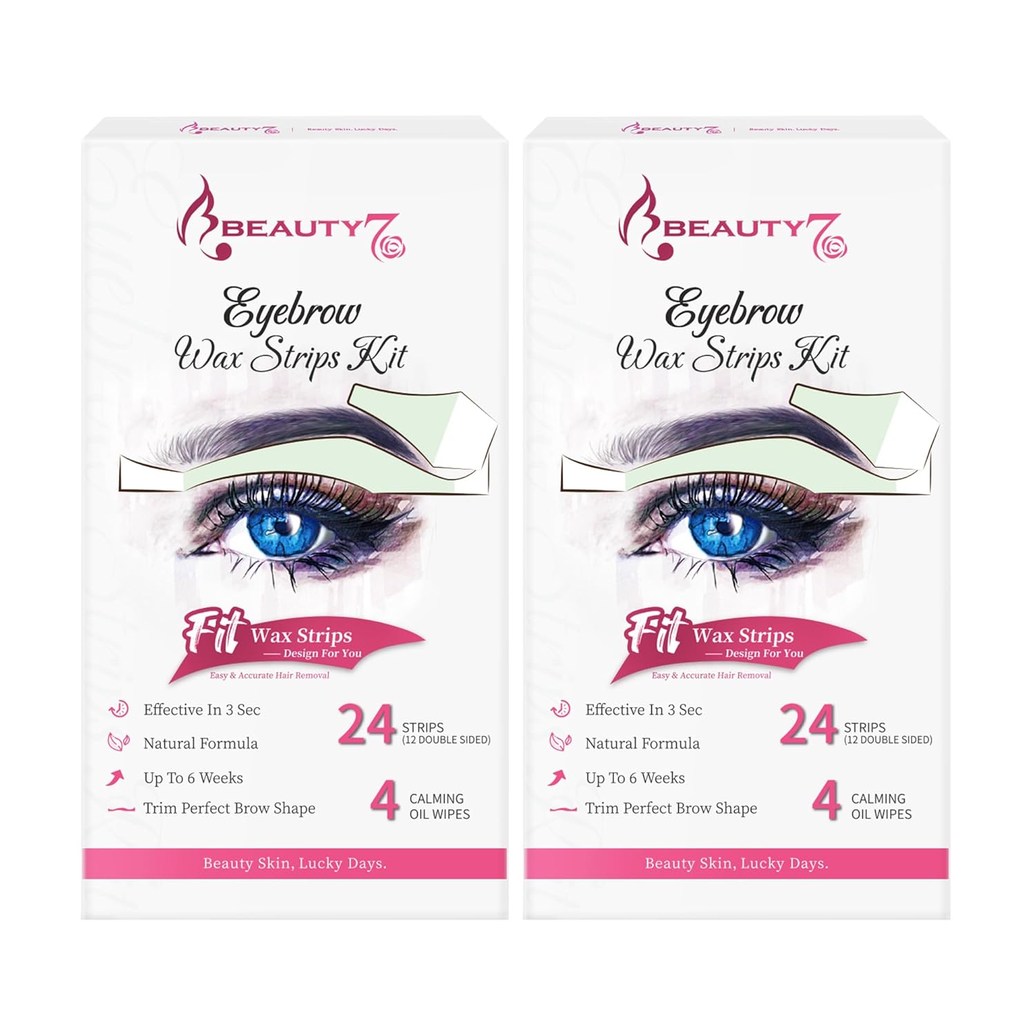 Beauty7 Wax Strips Kit for Sensitive Skin, Facial Hair Removal for Eyebrow, Lip, 24 Strips & 4 Calming Oil Wipes, At Home Waxing for Women
