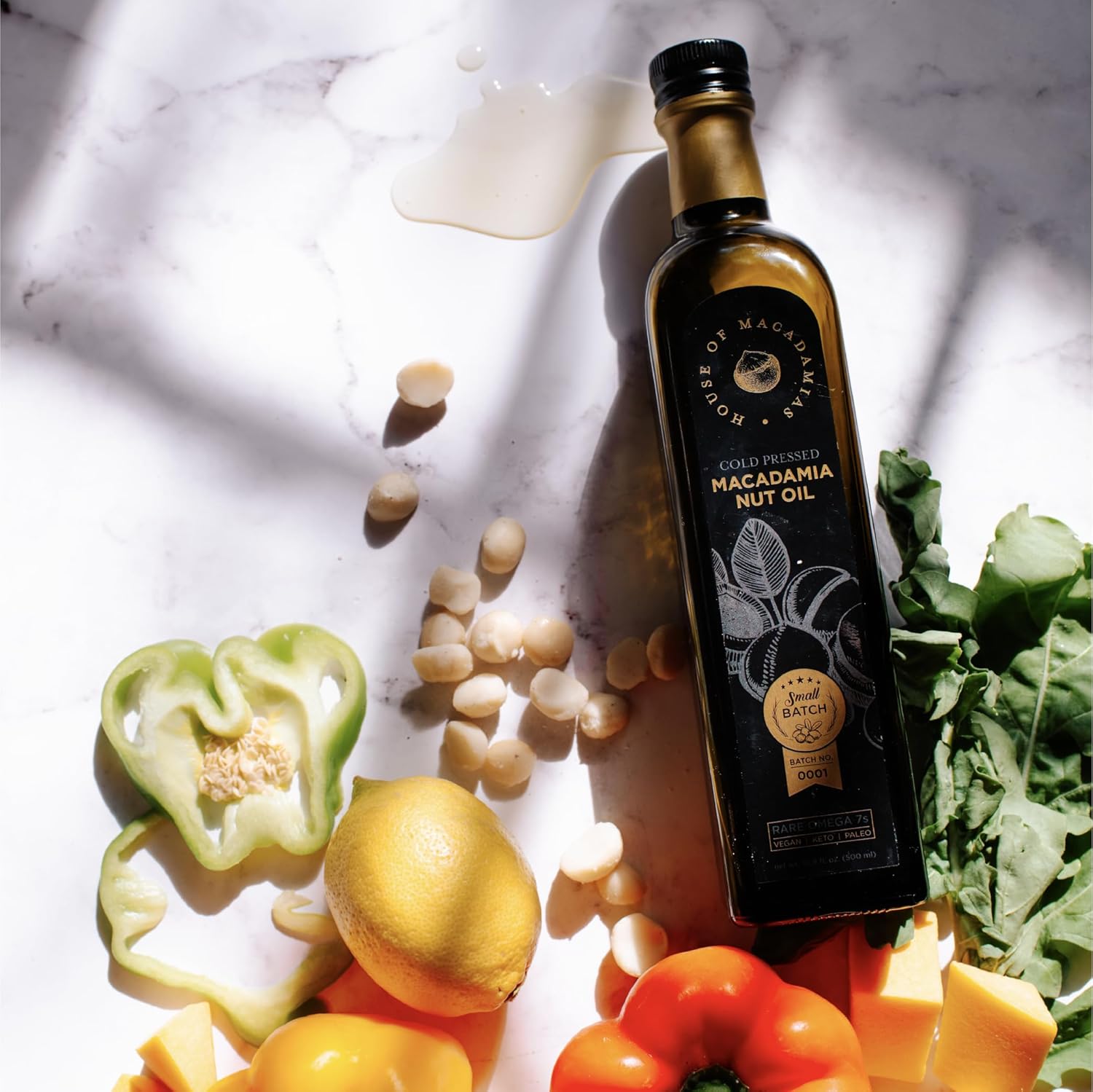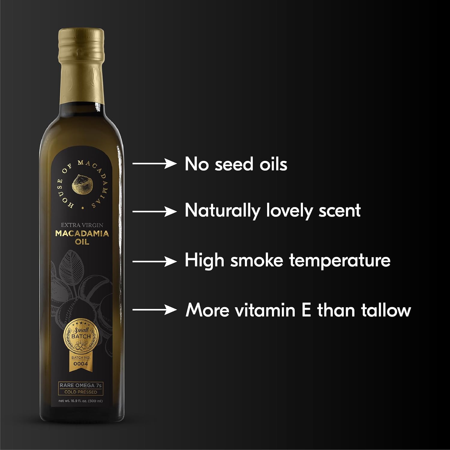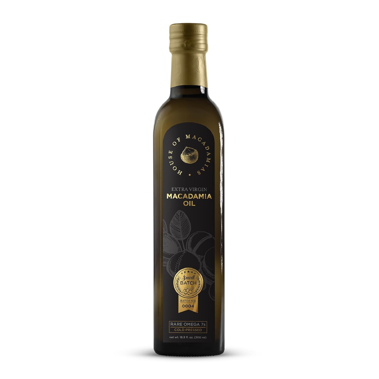 House of Macadamias, Macadamia Nut Oil, Extra Virgin, High Heat Cooking Oil, Cold-Pressed, 16.9 fl. oz. Glass Bottle - 100% Pure, Seed-Oil Free