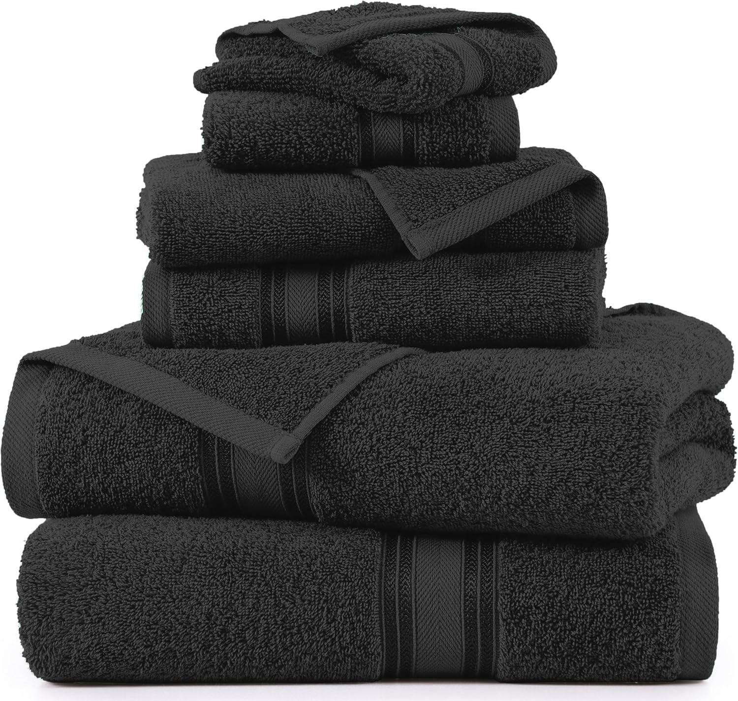 Lane Linen Luxury Bath Towels Set - 6 Piece Set, 100% Cotton Bathroom Towels, Zero Twist, Quick Dry Shower Towels, Absorbent Bath Towel, Super Soft, 2 Bath Towels, 2 Hand Towels, 2 Wash Cloths - Black