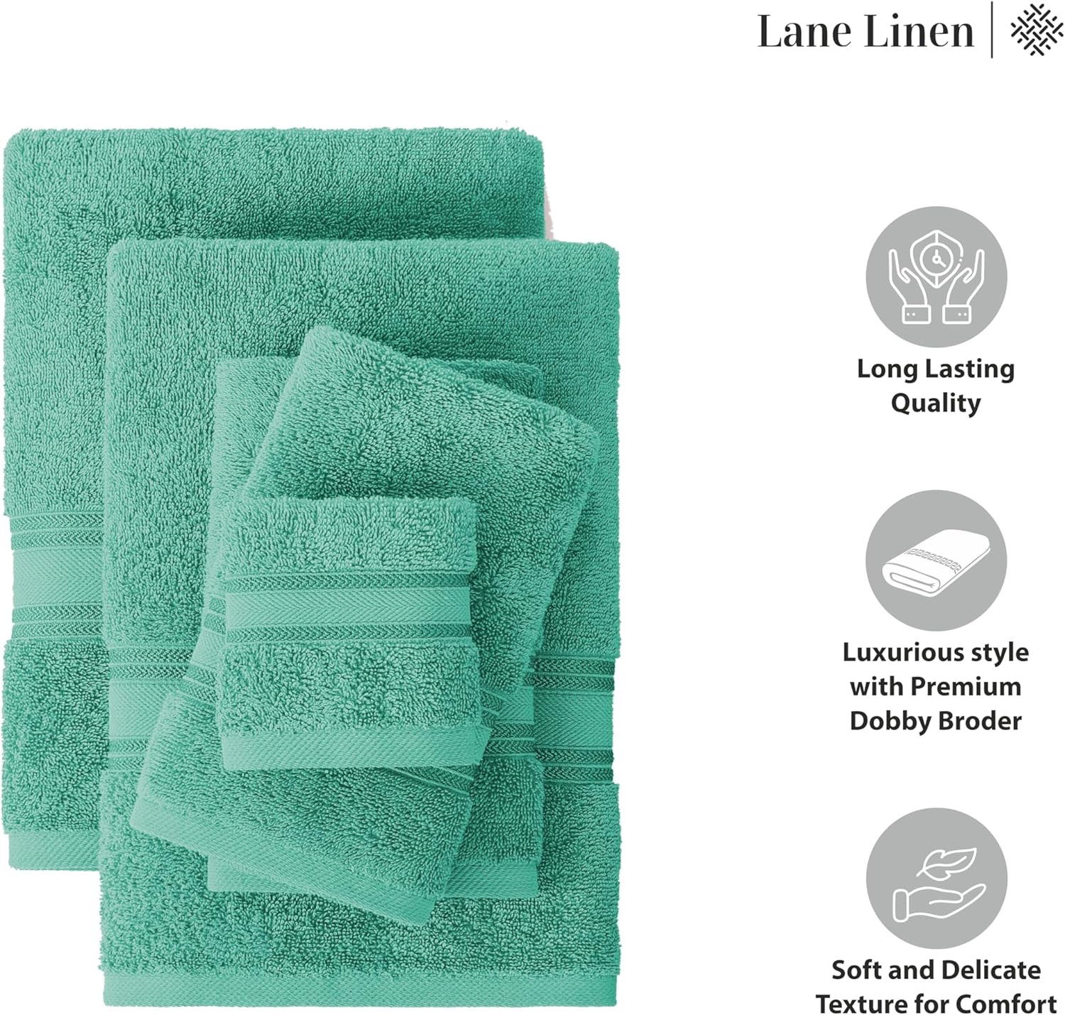 LANE LINEN Luxury Bath Towels Set - 12 Piece Set, 100% Cotton Bathroom Towel, Zero Twist, Quick Dry Shower Towels, Absorbent Towel, Super Soft, 4 Bath Towels, 4 Hand Towels, 4 Wash Cloths - Teal