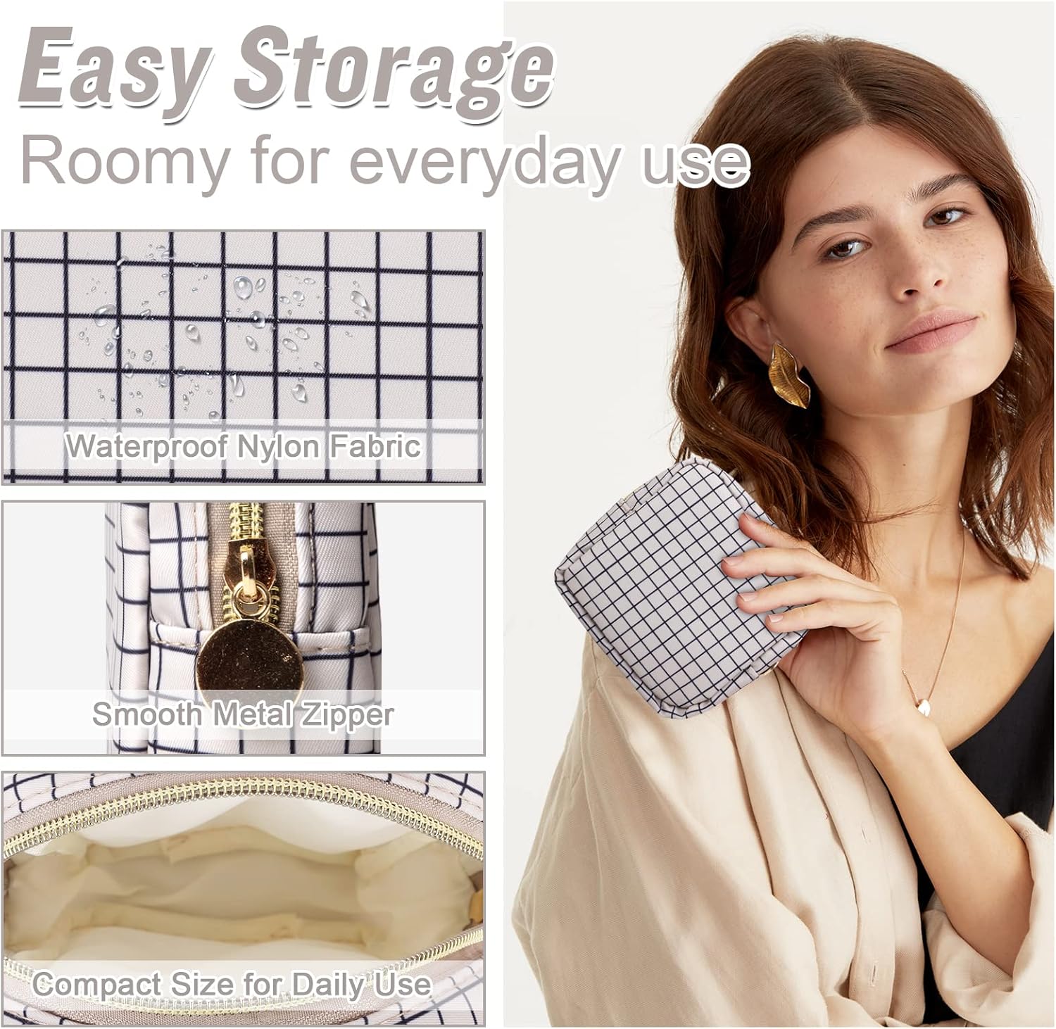 Nylon Mini Makeup Bag for Purse, Small Cute Checkered Makeup Bag Preppy Cosmetic Zipper Pouch Purse, Travel Coin Pouch Sanitary Napkin Storage Bag Clutch Make Up Organizer for Women Girls(Checkered)