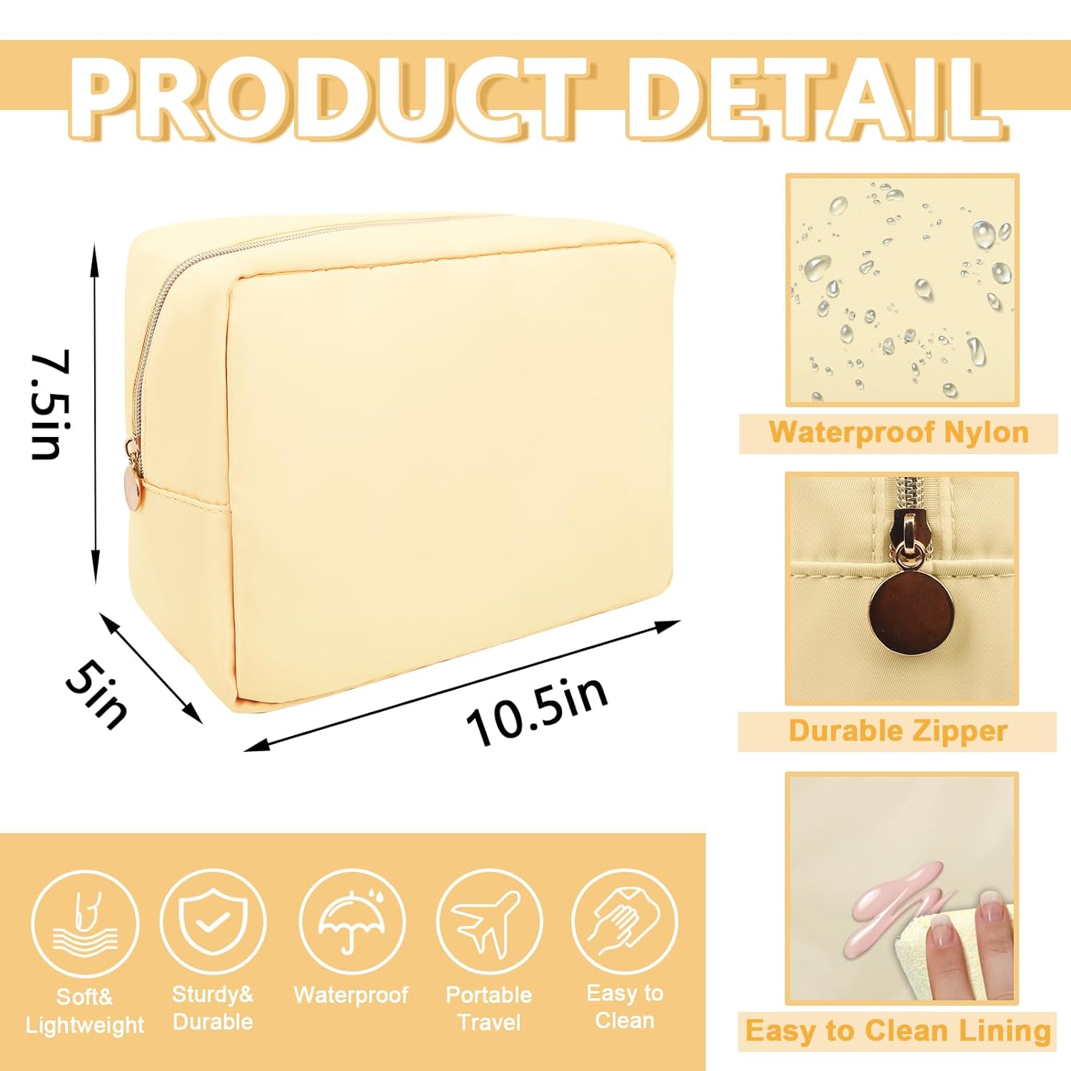 - 【Smooth&Sturdy Zipper】The nylon makeup bag has a metal zipper. The smooth and sturdy zipper is perfect for storing your daily essentials and preventing items from falling out of the bag.The smooth and sturdy zipper zipper allows you to have a good sense of use.