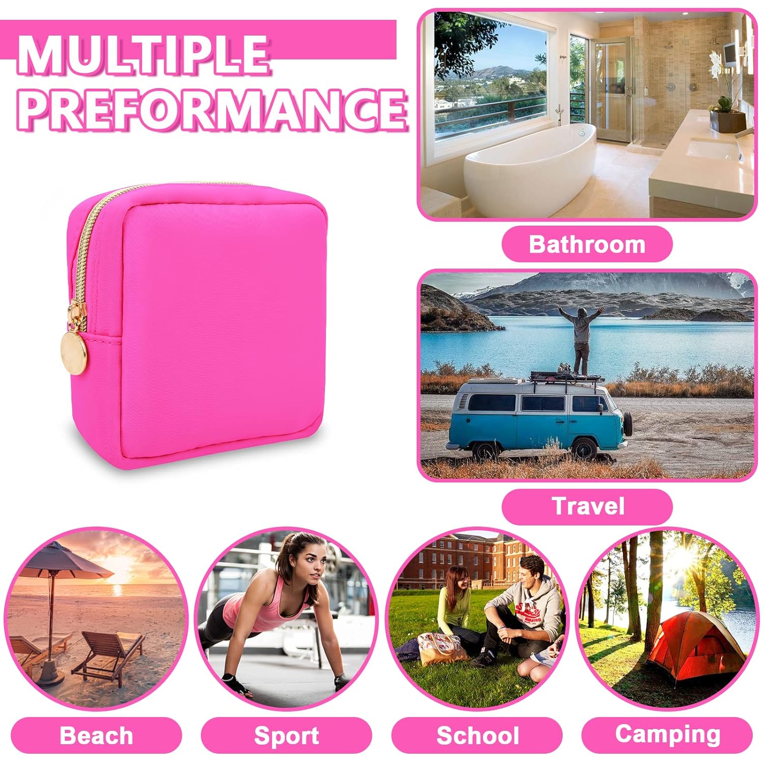 - 【Multi-purpose】The preppy makeup bag makes it easy to pack and carry cosmetics, jewelry, sanitary napkins, brushes, pencils, small electronic accessories, toiletries, medications, tools or other travel essentials. It's a great bag for school, travel, parties, camping, beach, gym, etc.