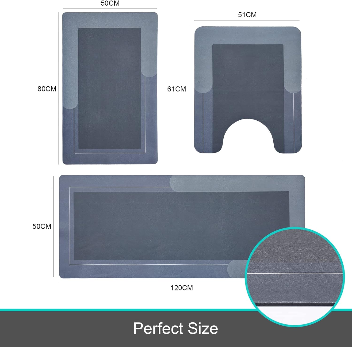 HelloTree 3PCS Bath Mat Rug Rubber Non Slip Quick Dry Rug Sets Super Absorbent Thin Bathroom Rugs Fit Under Door Blue Washable Bathroom Floor Mats for in Front of Bathtub, Shower Room, Sink