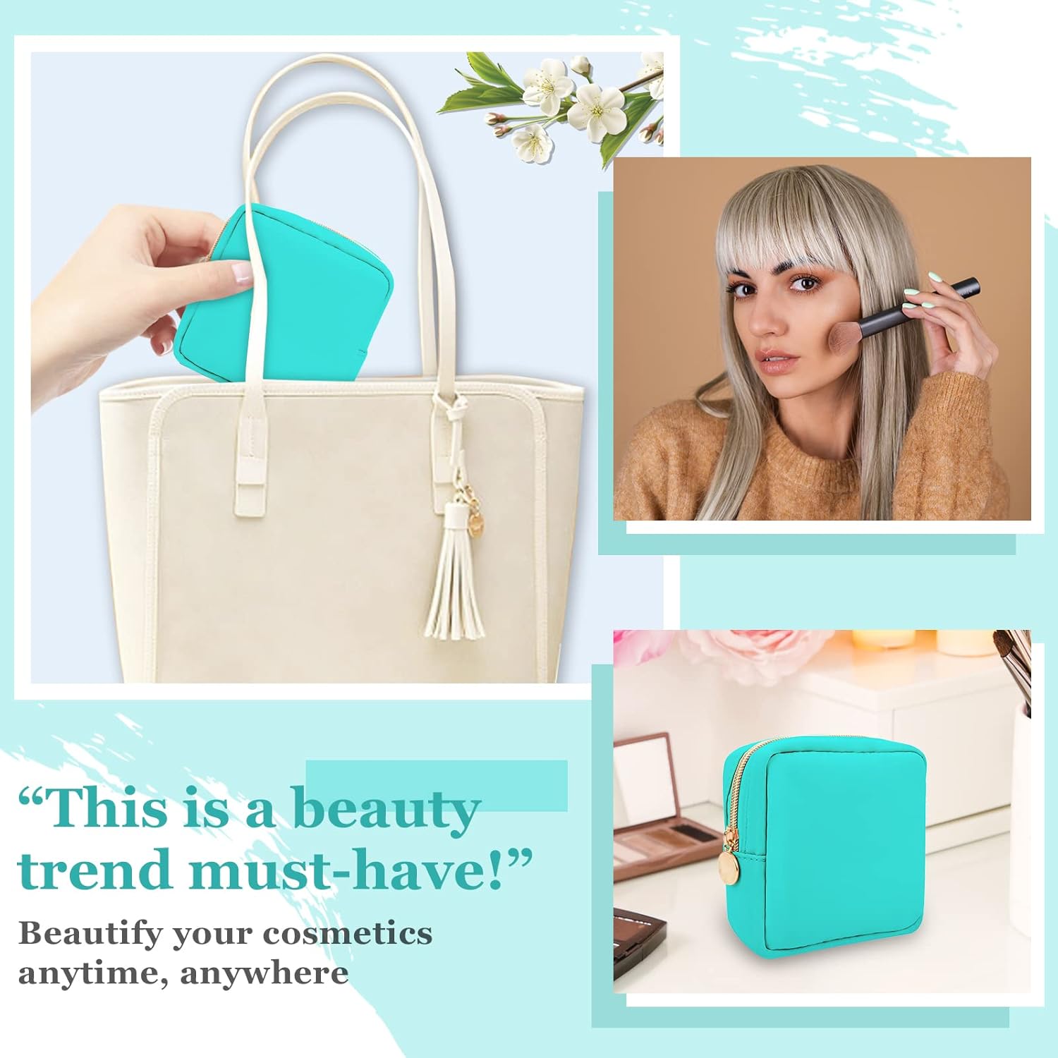 - ❤【Multiple Sizes & Colors】Large, Small, Mini, or Slim, we have it all! Cosmetic bags are available in many colors: Hot Pink, Beige, Black, Blue, Pink and other colors for you to choose. Nylon makeup bag for purse can be used for travel, outdoors and organization, it can be used as a purse bag, travel pouch, clutch, makeup organizer and more.