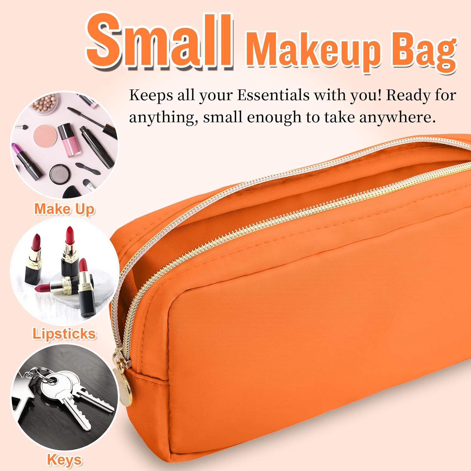 Nylon Small Makeup Bag for Purse, Cute Preppy Makeup Bag Cosmetic Zipper Pouch Purse, Waterproof Portable Travel Toiletry Bag Clutch Makeup Brush Bag Organizer Storage for Women Men Girls(Orange)