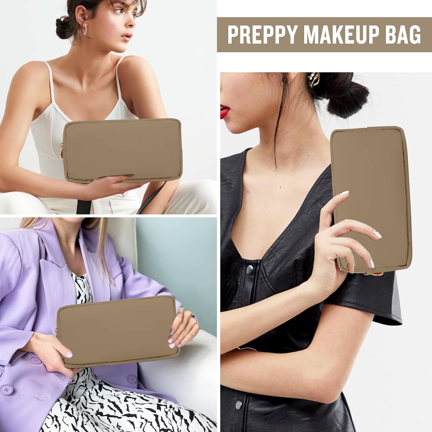 - ❤【DIY Your Bag & Patches Friendly】Small compact makeup bag material allows you to easily attach your favorite patches and fits all travel toiletries. You can put any chenille letters or patterns you want on it, "STUFF" SNACK "BEACH" and so on to design your unique travel makeup bag. Make your preppy makeup bag very interesting and vivid!