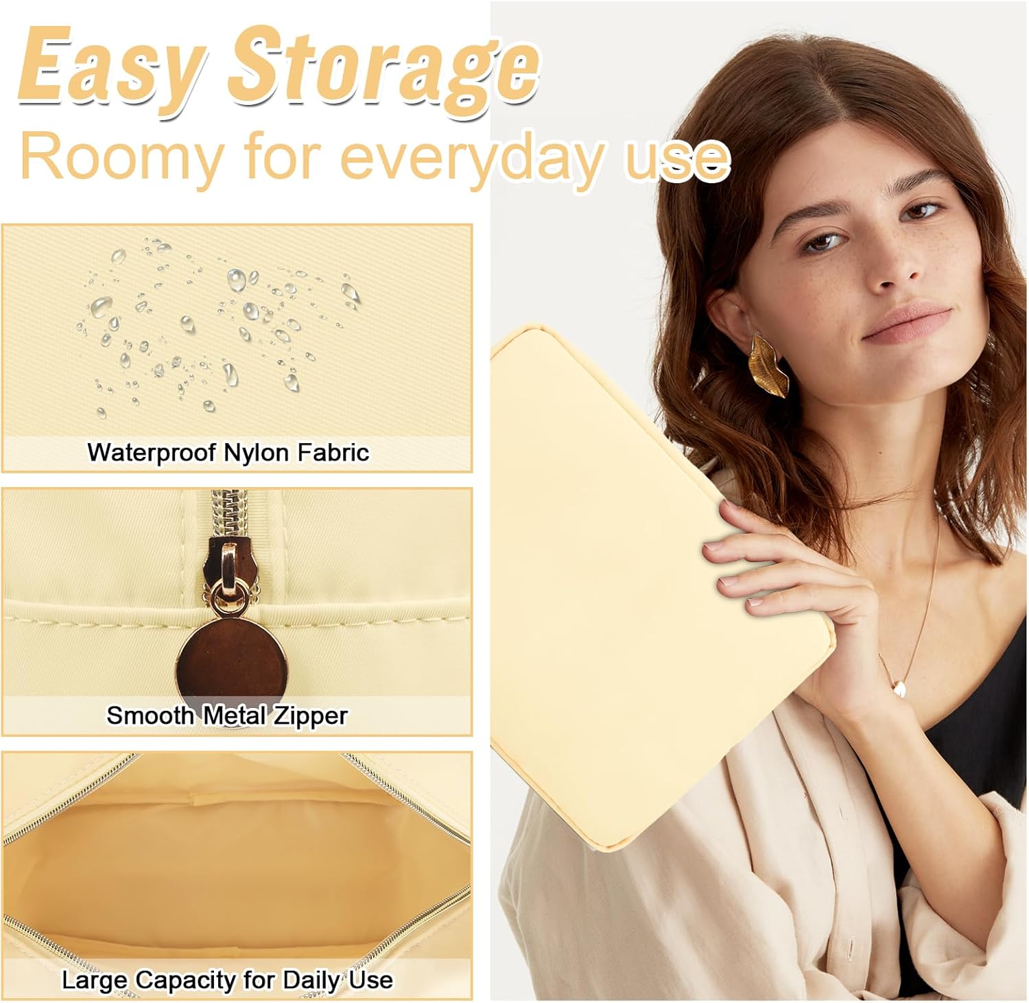 - ❤【Multiple Sizes & Colors】Large, Small, Mini, or Slim, we have it all! Cosmetic bags are available in many colors: Hot Pink, Beige, Black, Blue, Pink and other colors for you to choose. Nylon makeup bag for purse can be used for travel, outdoors and organization, it can be used as a purse bag, travel pouch, clutch, makeup organizer and more.