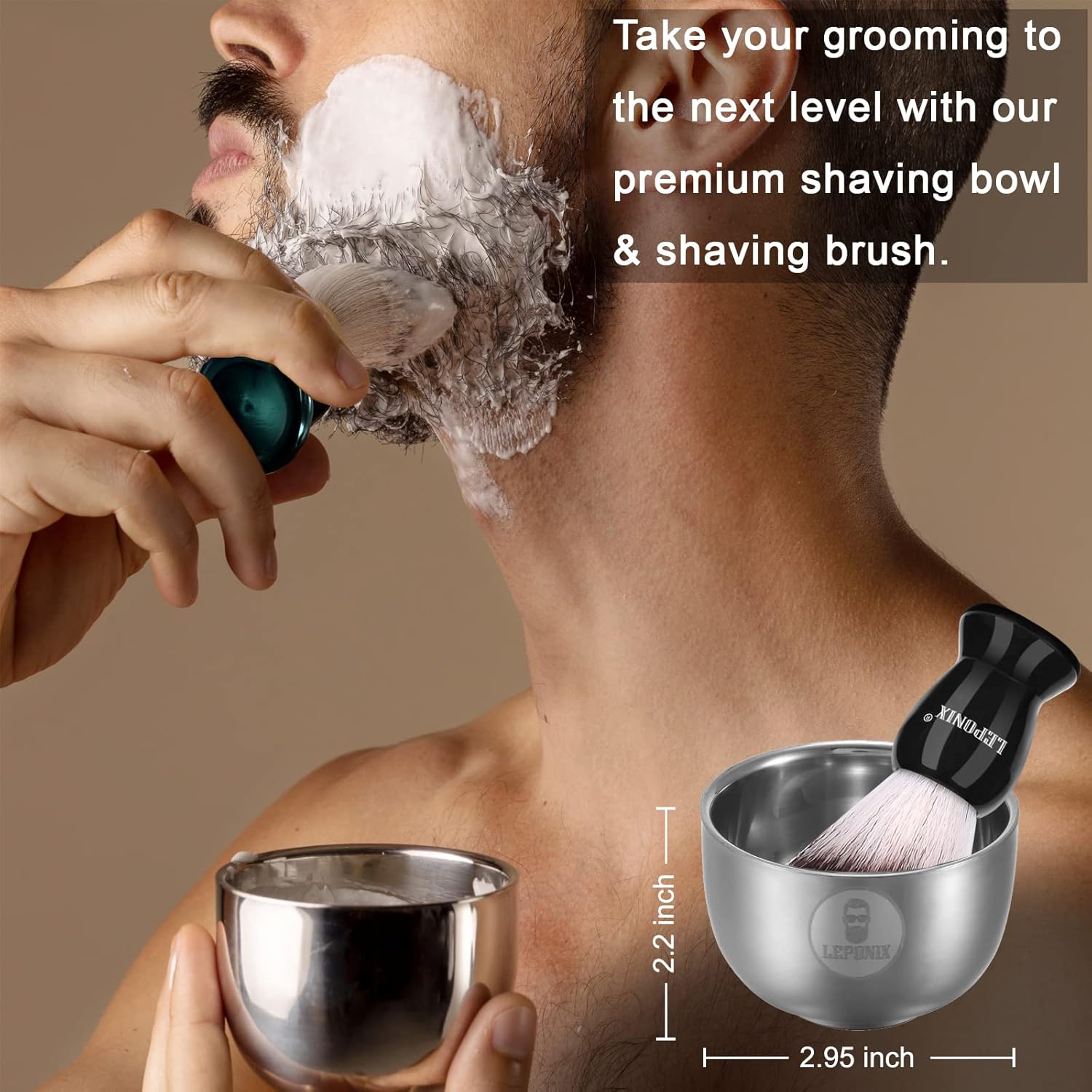 - Shave Brush & Double-Sided Stainless Steel Shaving Bowl: PERFECT Compliment for shaving soap, cream and any double edge safety razor, straight razor. Engineered specifically to quickly work up a Thick, Rich and Foamy Lather, STIMULATES and Exfoliates your skin just the right amount to simulate that luxury hotel barbershop experience