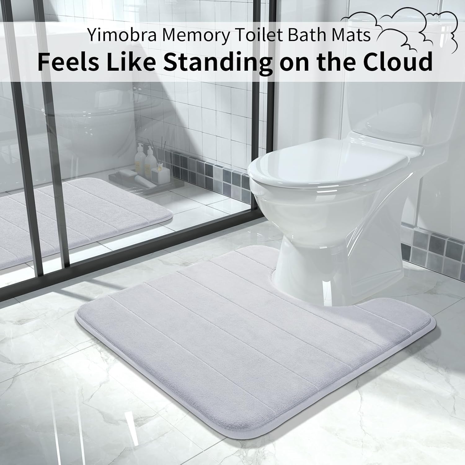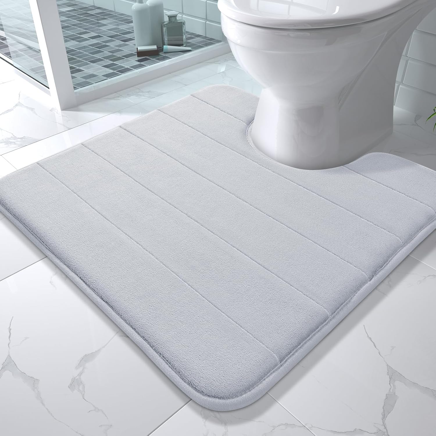 Yimobra Memory Foam Toilet Bath Mat U-Shaped, Soft and Comfortable, Super Water Absorption, Non-Slip, Thick, Machine Wash and Easier to Dry for Bathroom Commode Contour Rug, 24 X 24 Inches, Silver