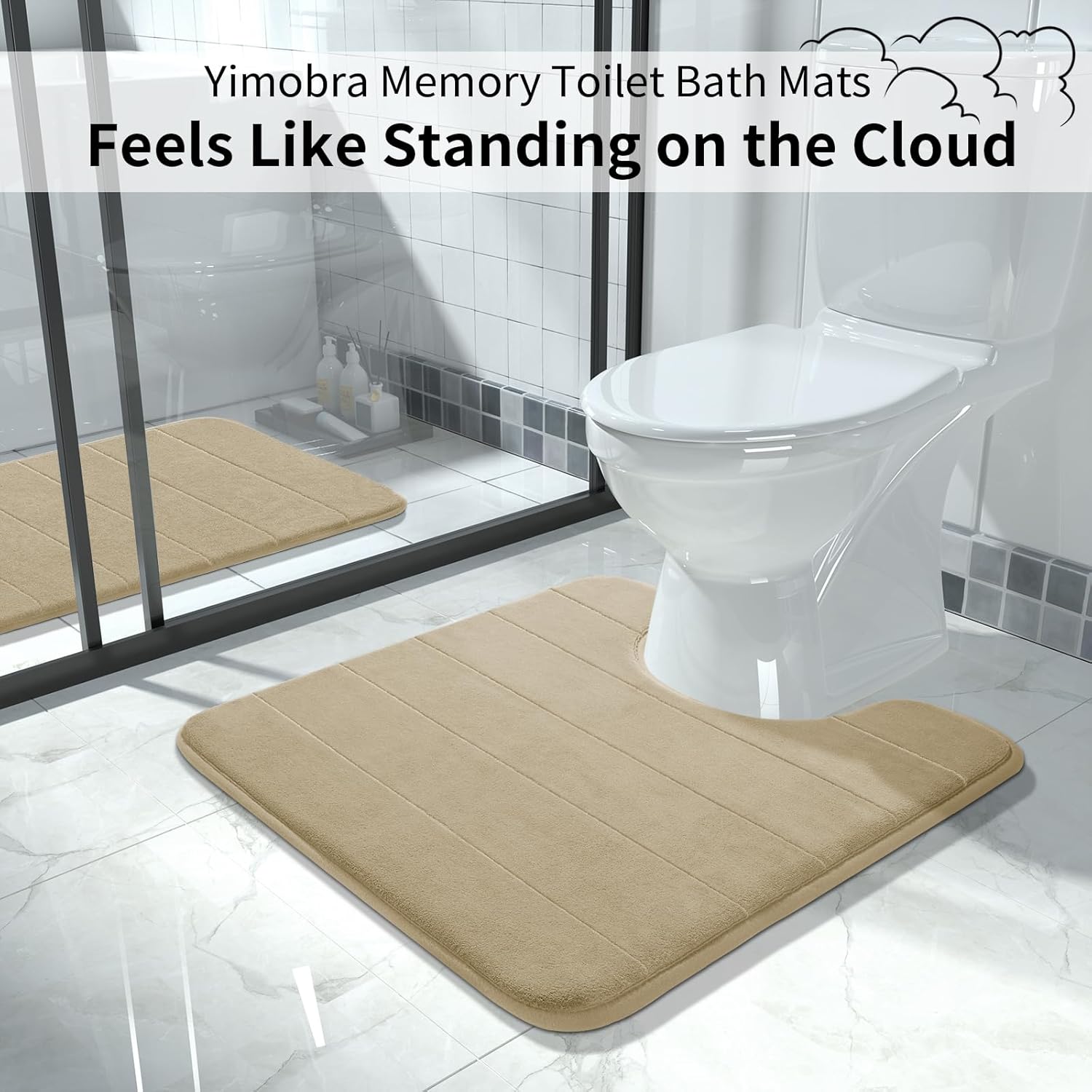 Yimobra Memory Foam Toilet Bath Mat U-Shaped, Soft and Comfortable, Super Water Absorbent, Non-Slip, Machine Wash and Easy to Dry for Bathroom Commode Contour Rug, 24 X 24 Inches, Pale Khaki