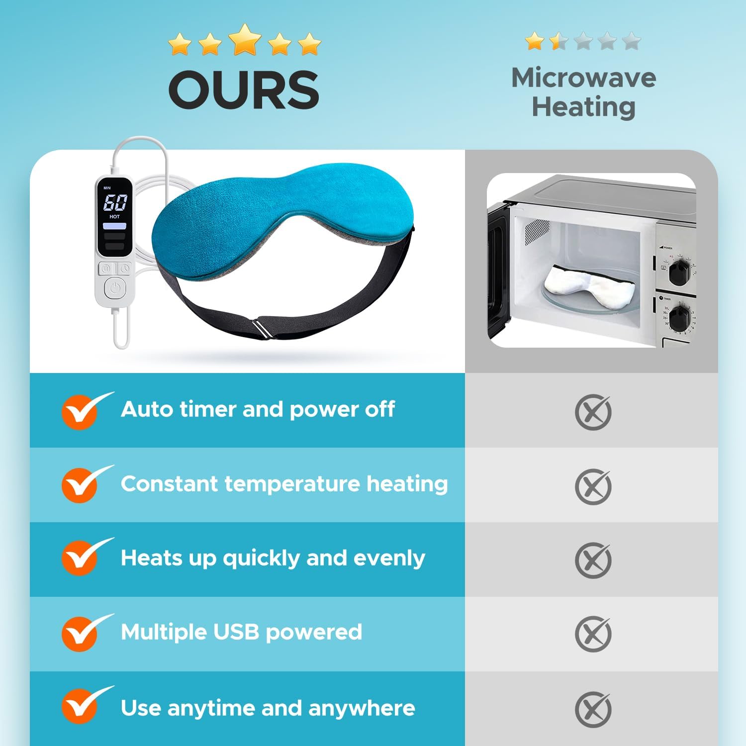 - Far-infrared Heat Relieves Eye Discomfort: Our heated eye mask uses far infrared heating technology to generate heat quickly, increase oil secretion, effectively relieve dry eyes, eye fatigue, sinus migraine, dark circles, blepharitis, stye, puffiness, and MGD, and provide ultra comfy hot for your eyes.