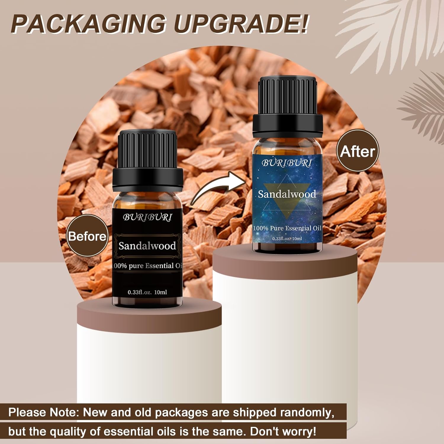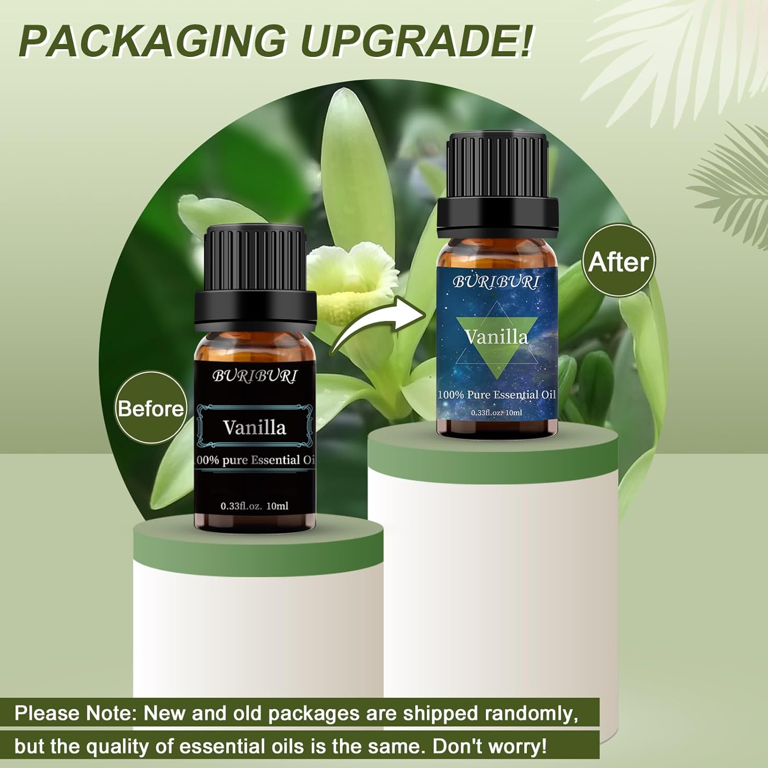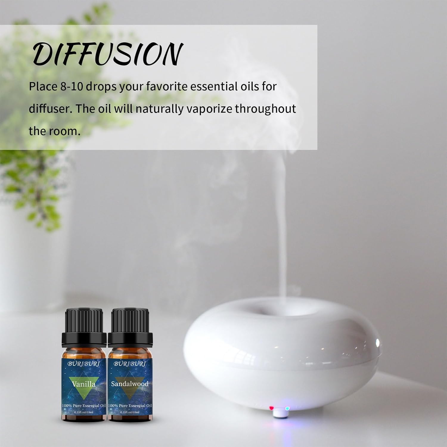- Packing Includes: 10ml Vanilla Oil x1, 10ml Sandalwood Oil x1. With no adulterants or dilution, 100% pure. BURIBURI essential oil is bottled in a durable amber glass bottle.