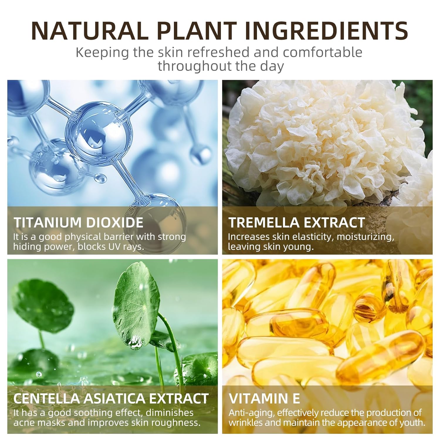 - 【Long Lasting Concealer】The bb cream foundation uses a skin-friendly elastic bionic film. The soft bionic film presses out an even and smooth BB cream to create a full coverage foundation. Brightens skin tone, hides blemishes, pores, and acne marks. It has a 24-hour concealer effect, does not clog pores, and is delicate, comfortable and breathable.