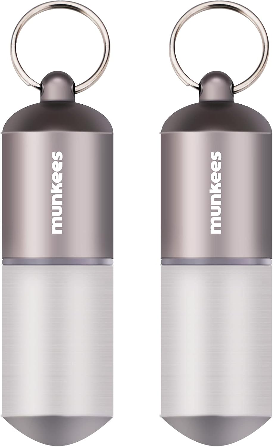 munkees Portable Pill Case Large Waterproof Capsules EDC Keychain, Travel Pill Bottle for Camping, Hiking, Backpacking, Compact Valuables Container for Outdoors 2-Pack