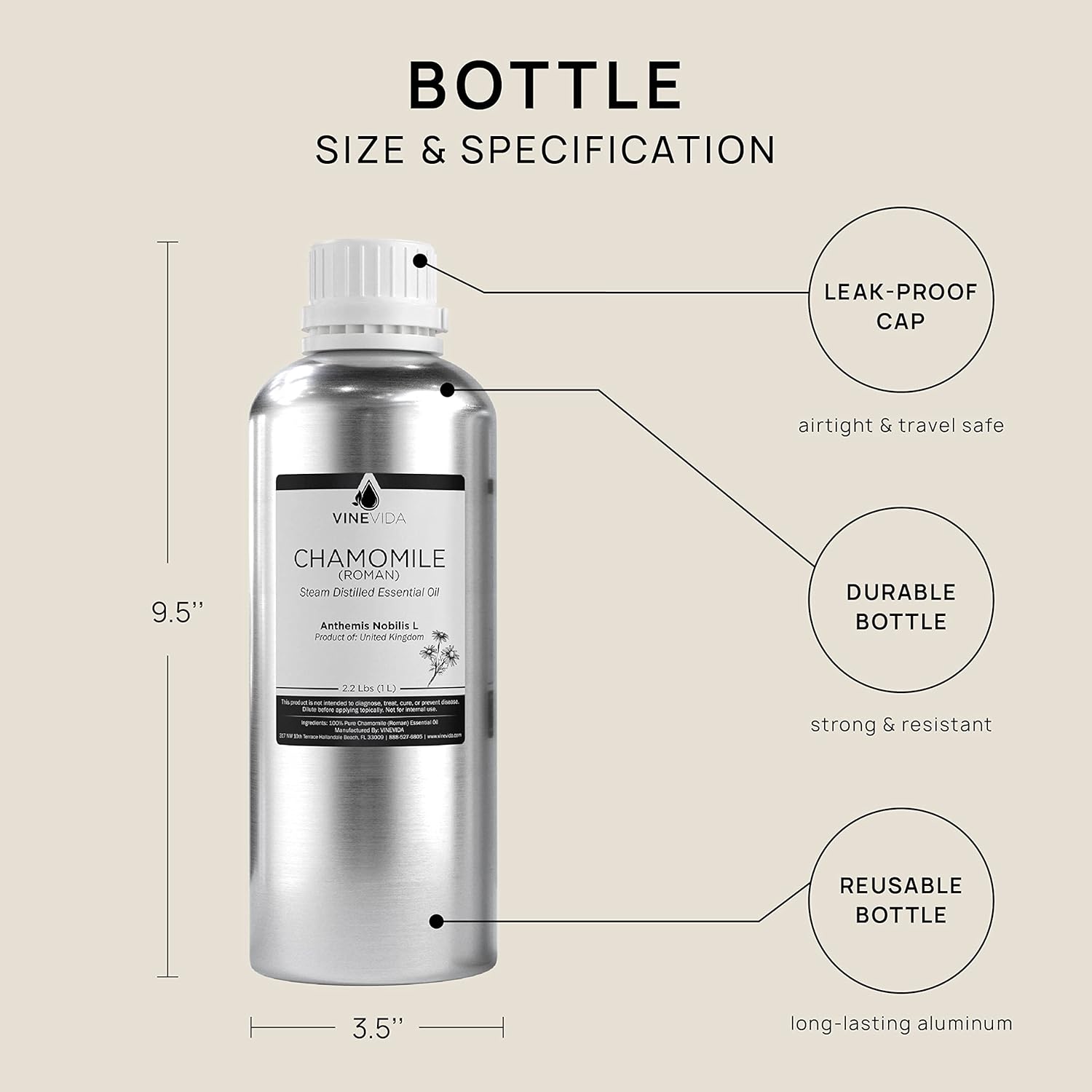 VINEVIDA Chamomile Roman Essential Oil 32 oz - Undiluted Chamomile Oil 32 oz - Chamomile Candle Oil Scent - DIY Candle Scents for Candlemaking - Bulk Essential Oil for Soap Making Safe for Skin
