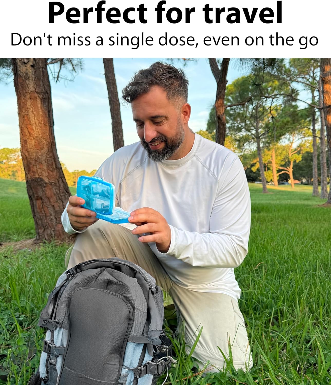 - Moisture proof- the pill holder case for traveling securely closes, and a silicone gasket protects your medications from moisture and dust. It’s a travel essential to high humidity areas: the beach, camping, etc.