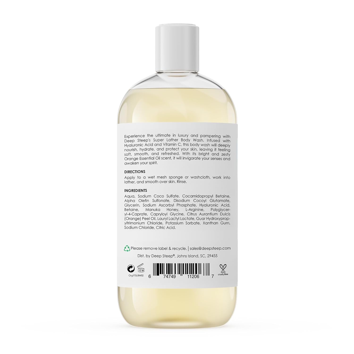 Deep Steep Super Lather Body Wash, Orange, 17 oz – Hydrating Shower Gel with Hyaluronic Acid, Manuka Honey, & Orange Essential Oil – Vegan, Clean Beauty, Clean & Refreshed Skin
