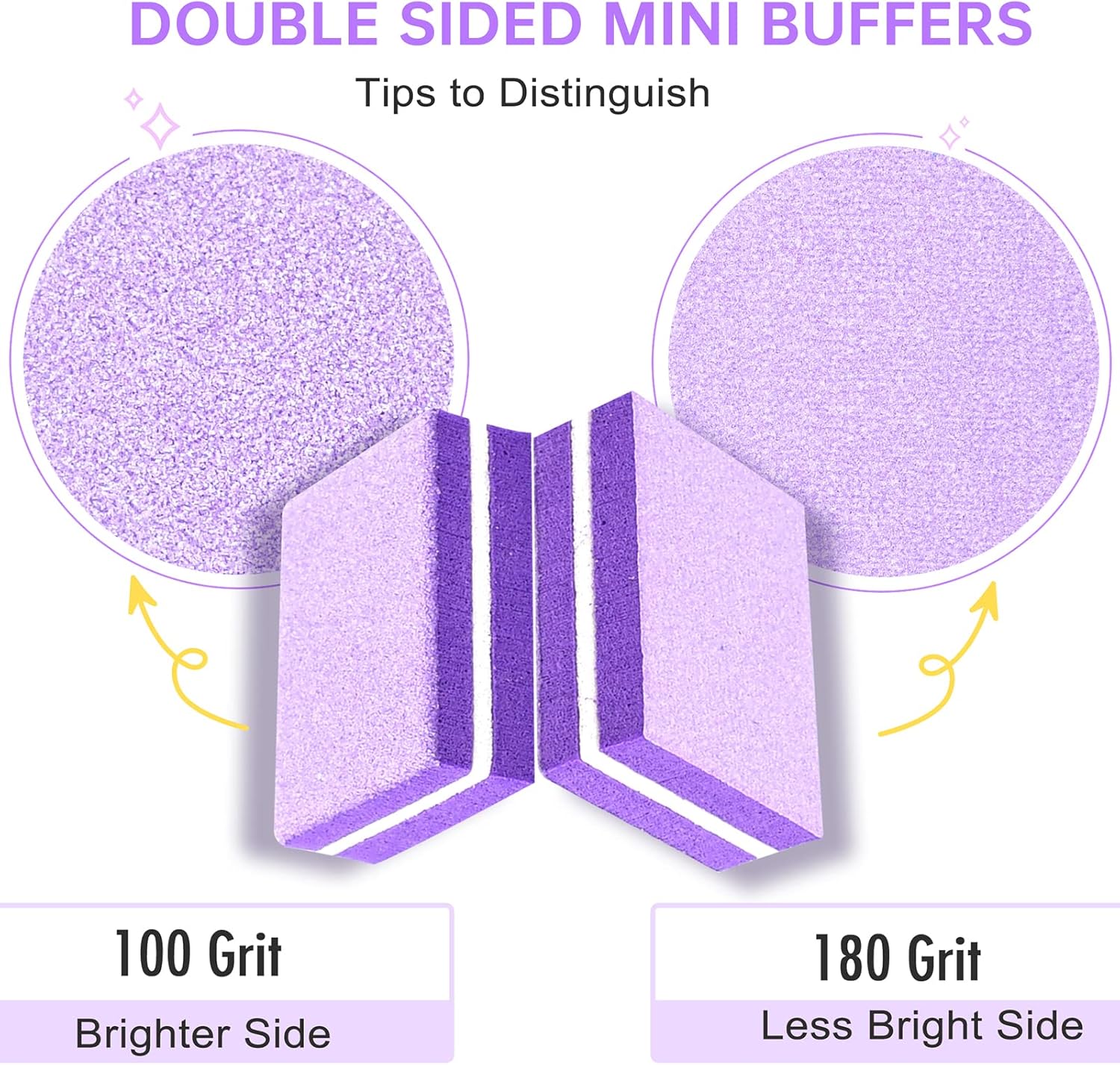 Mini Nail Buffer Block File 100/180 Grit Sponge Buffing Sanding Blocks Manicure Tools 50Pcs (Purple)
