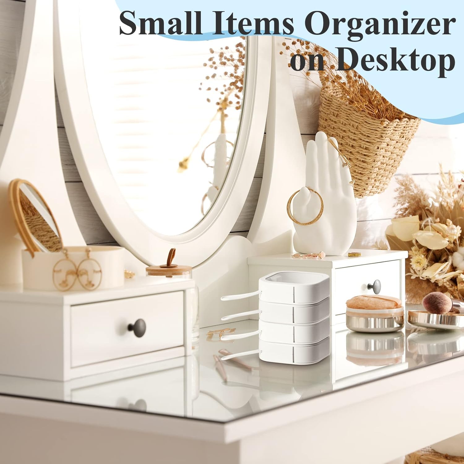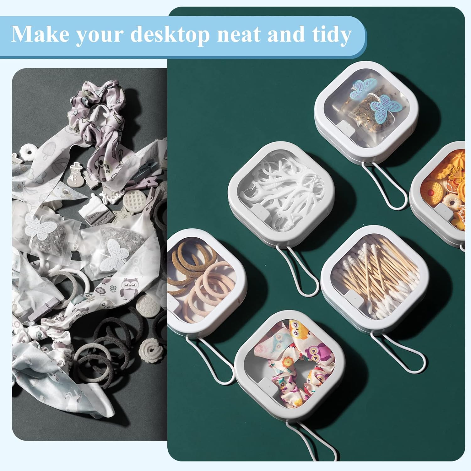 - Suitable Size: hair tie holder organizer is approx. 3.7 x 3.7 x 1.2 inches/ 9.5 x 9.5 x 3 cm in size and can accommodate many of your small items, such as rings, earrings, necklaces and so on; When you want to go out, you can put it in your handbag or suitcase, which does not take up much space