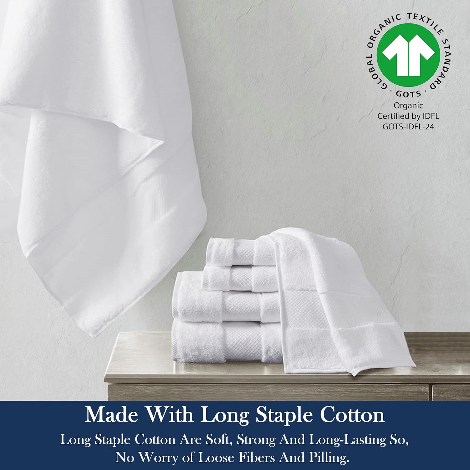 - TOWEL SET INCLUDES: This Organic Bath Towel set include 4 Bath Towels (30"X58"), 4 Hand Towels (20"X30") and 12 Wash Cloths (13"X13"). This towel set Constructed with 100% two-ply long-staple organic cotton terry cloth. So, no worry of loose fibers and pilling. Ultimate as a gift for somebody or as a treat for yourself! Raise your bathroom to a higher level with this luxurious Organic towel set.