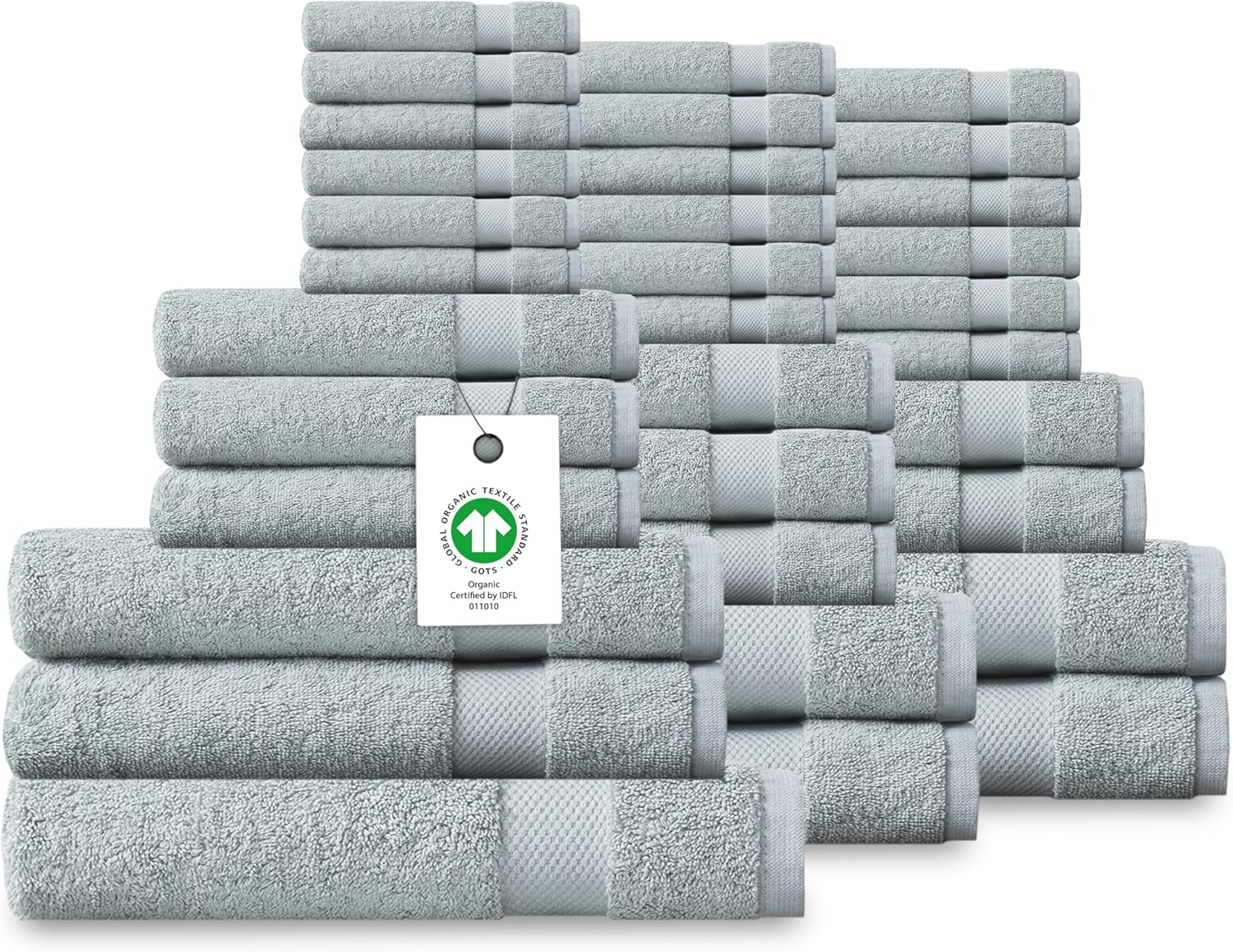 Delara Organic Cotton Luxuriously Plush Bath Towel 33 Piece Set|GOTS & Oeko-TEX Certified|Premium Hotel Quality Towels|Feather Touch Technology|650 GSM Long Staple|Soft, Quick Dry & Ultra-Absorbent