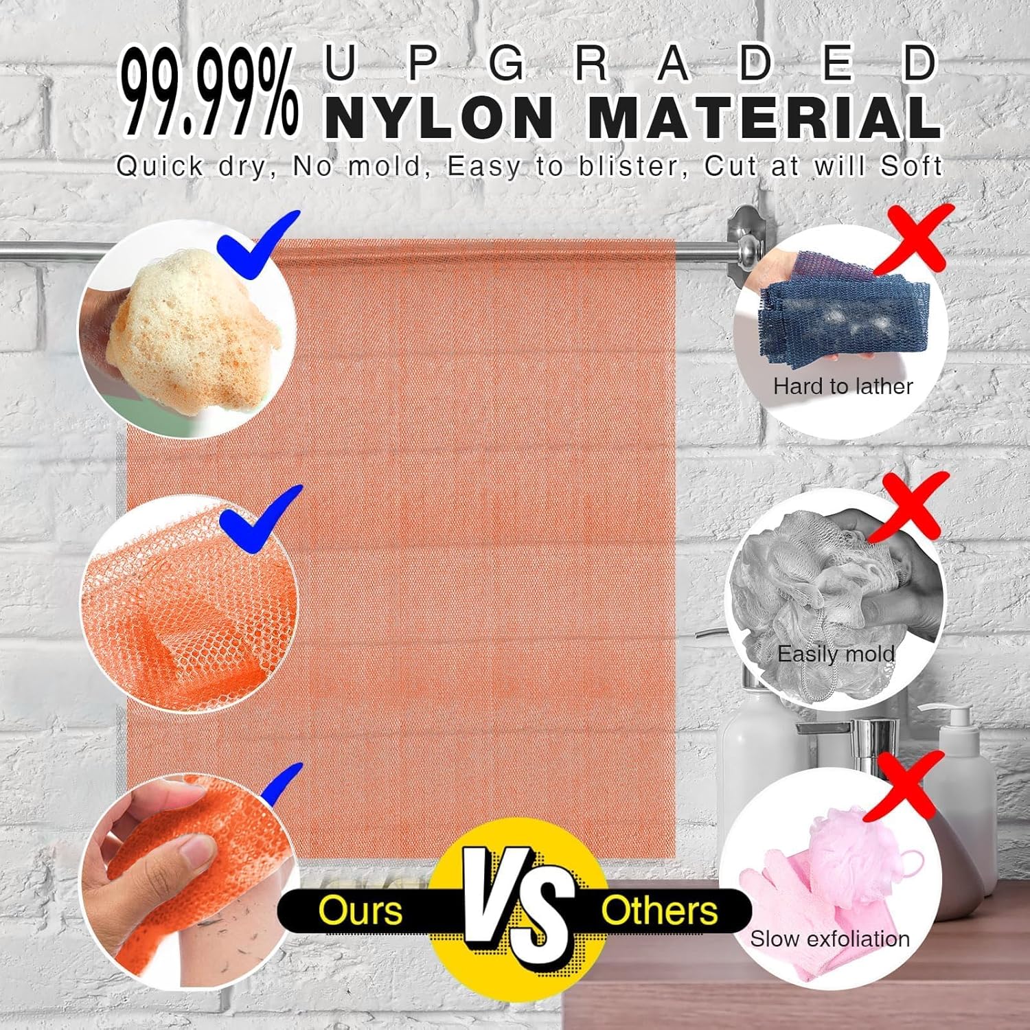 - 【Better quality material】Our long bath net sponge is made of safe and reliable New type nylon materials, which is sturdy and reliable and reliable for long time using, Light but very powerful and also strong soap lathering, washing machine friendly, and dry quickly due to its porous nature, providing a more clean and enjoyable bathing experience.