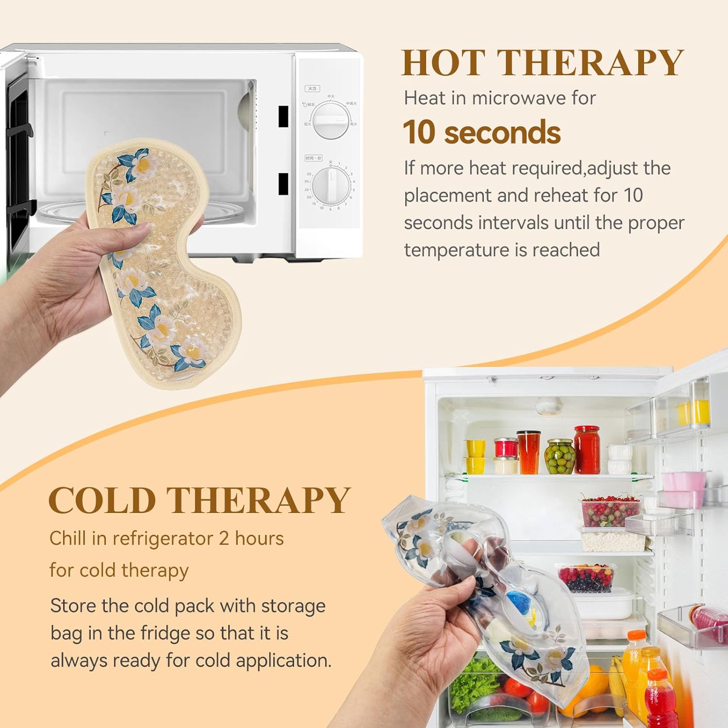 - 【Cold & Hot Compress Therapy】For cold compresses, simply place the cold eye mask in a reusable storage bag and freeze for 30 minutes, cold compress eye masks can make you feel calm and help relieve migraines and headaches. For hot compresses, simply microwave on medium-high/high power for about 20 seconds relieve fatigue, dry eyes, and dark circles.