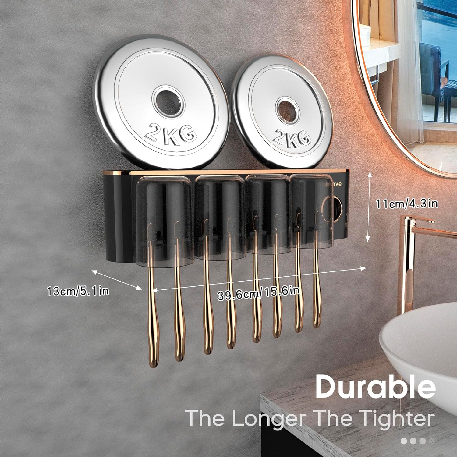 iHave Toothbrush Holders Bathroom Accessories with Toothpaste Dispenser, 4 Cups Toothbrush Holder Wall Mounted Bathroom Decor