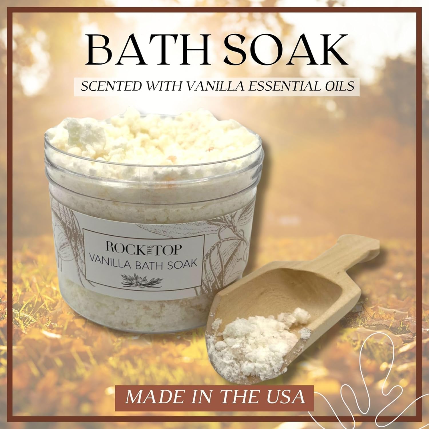 - Natural Beauty Products for Women: 4 Vanilla lush bath bombs (bath truffles), mineral-rich epsom salt bath soak, moisturizing pumpkin spice scented handmade soap bar, wooden scoop, mesh bath poof, & 2 bath tea bags to revitalize the mind and spirit **wooden tray pictured is NOT included**.