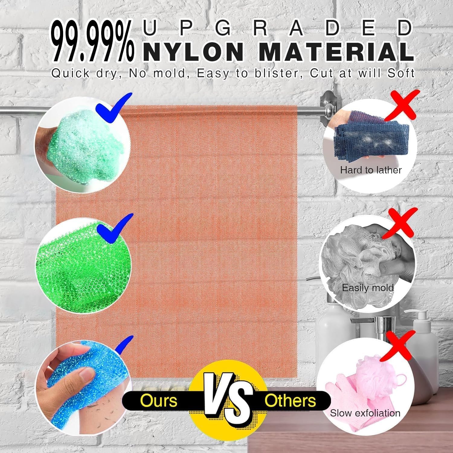 - 【Better quality material】Our long bath net sponge is made of safe and reliable New type nylon materials, which is sturdy and reliable and reliable for long time using, Light but very powerful and also strong soap lathering, washing machine friendly, and dry quickly due to its porous nature, providing a more clean and enjoyable bathing experience.
