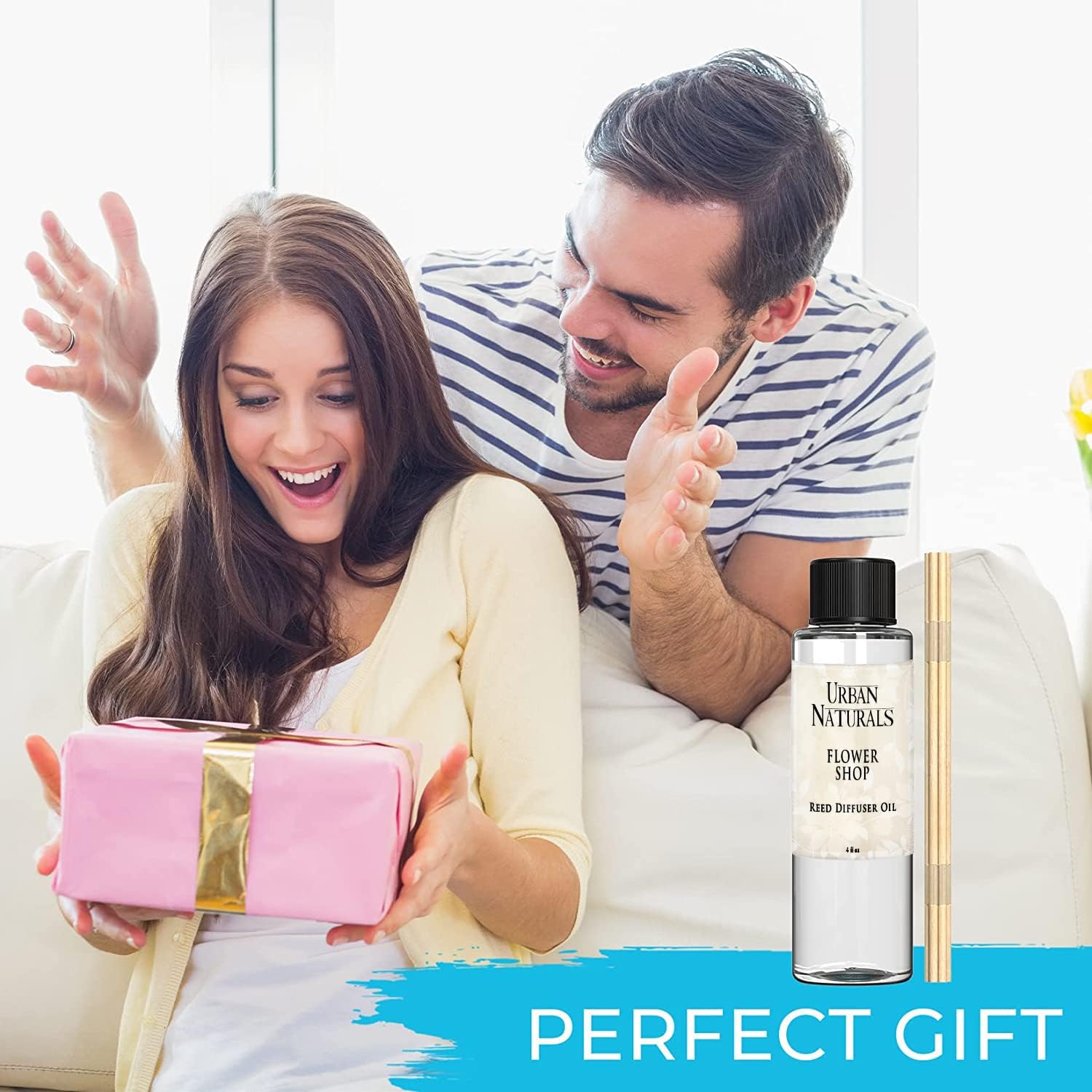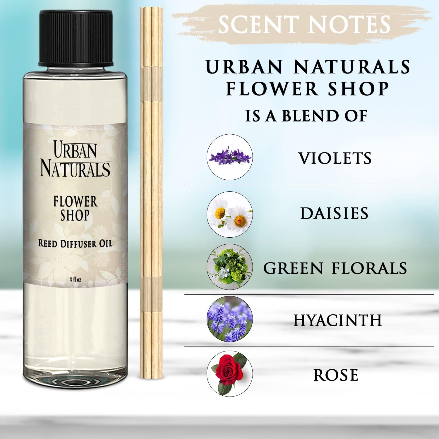 Urban Naturals Reed Diffuser Oil Refill Flower Shop, Violets, Daisies, Hyacinth, Rose Petals, 4 oz + Free Reed Sticks, Made in The USA