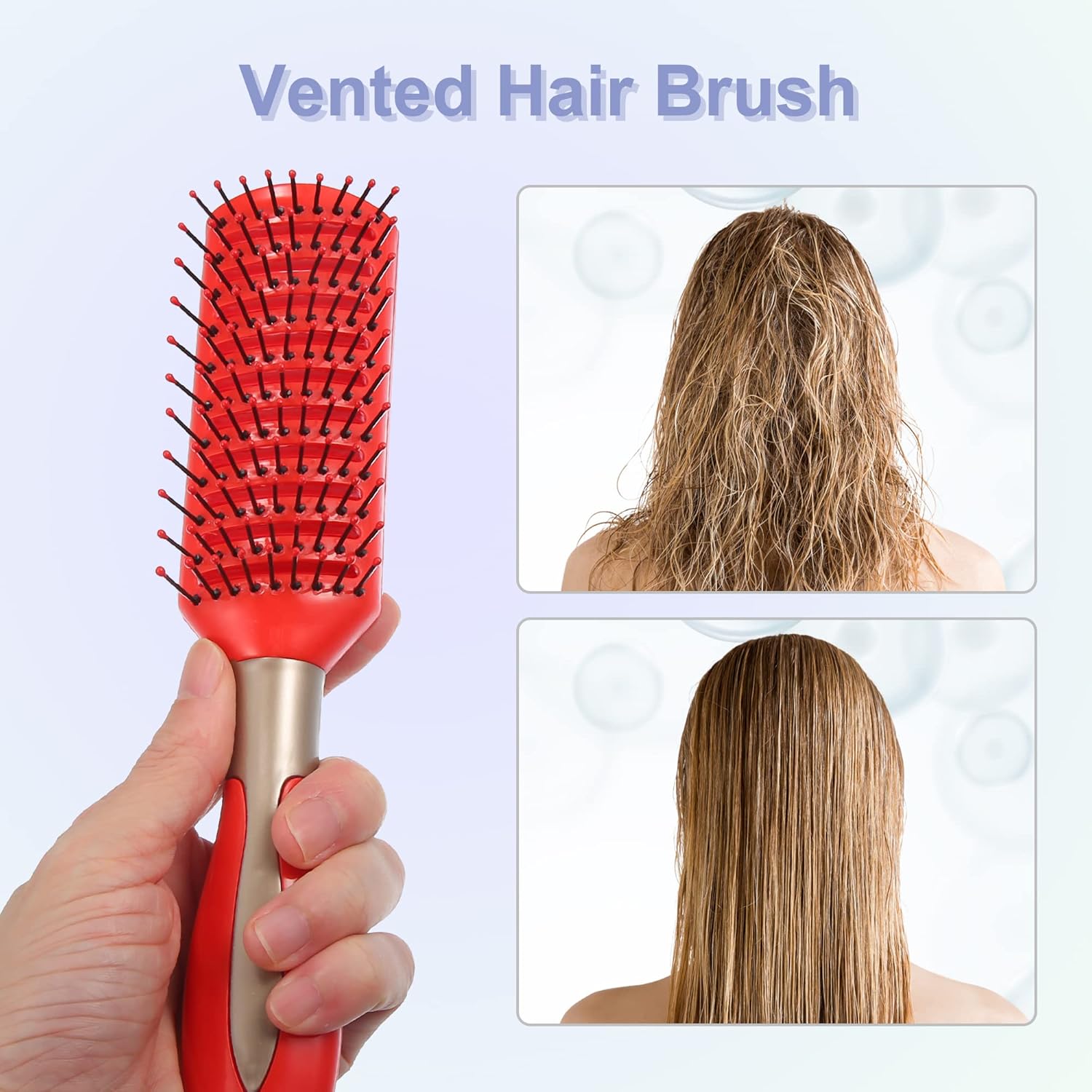 VOCOSTE 1 Pcs Hair Brush, Detangling Brush for Women Men, Hair Brush for Straight, Curly, Long, Short, Thick, Thin, Dry Hair, Red, Plastic