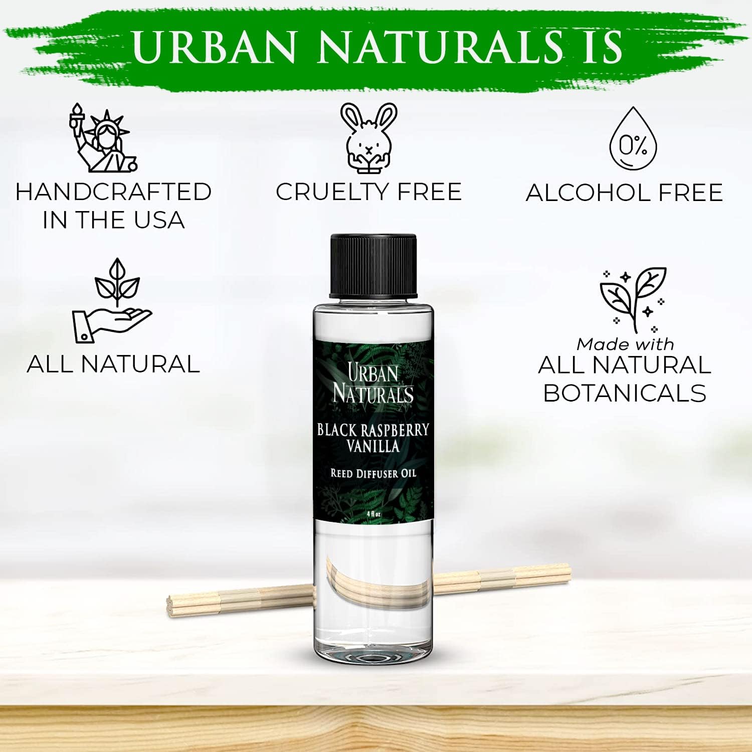 Urban Naturals Reed Diffuser Oil Refill, Black Raspberry Vanilla Oil for Diffuser with Orchid, Amber, Sandalwood, 4 oz + Free Reed Sticks, Made in The USA