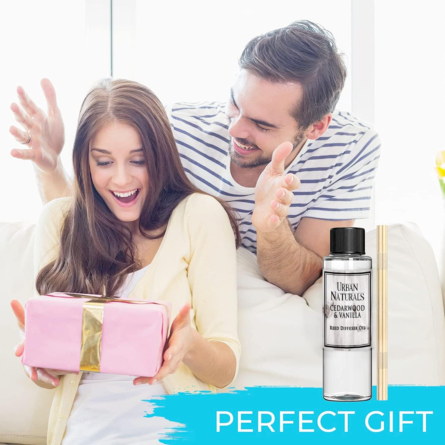 Urban Naturals Reed Diffuser Oil Refill, Cedarwood Vanilla Fragrance Oil with Oak, Cedar, Vanilla, 4 oz + Free Reed Sticks, Made in The USA