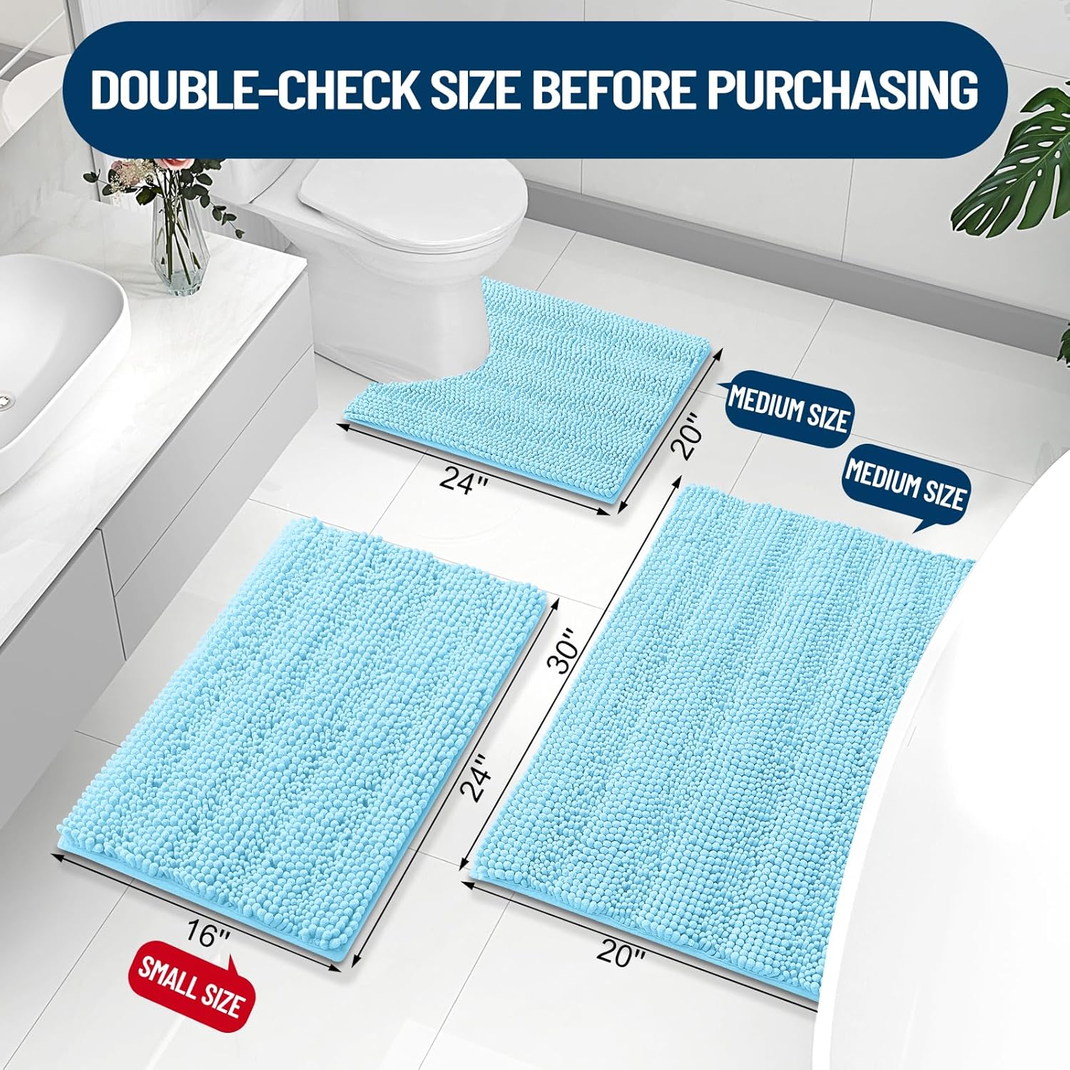 - [Fade-Resistant and Quick-Drying] Our rugs feature premium chenille fabric that's not only ultra-absorbent but also dries quickly. These bathroom mats are easy to clean, and their fade-resistant quality ensures that you can machine wash and dry them as often as needed.