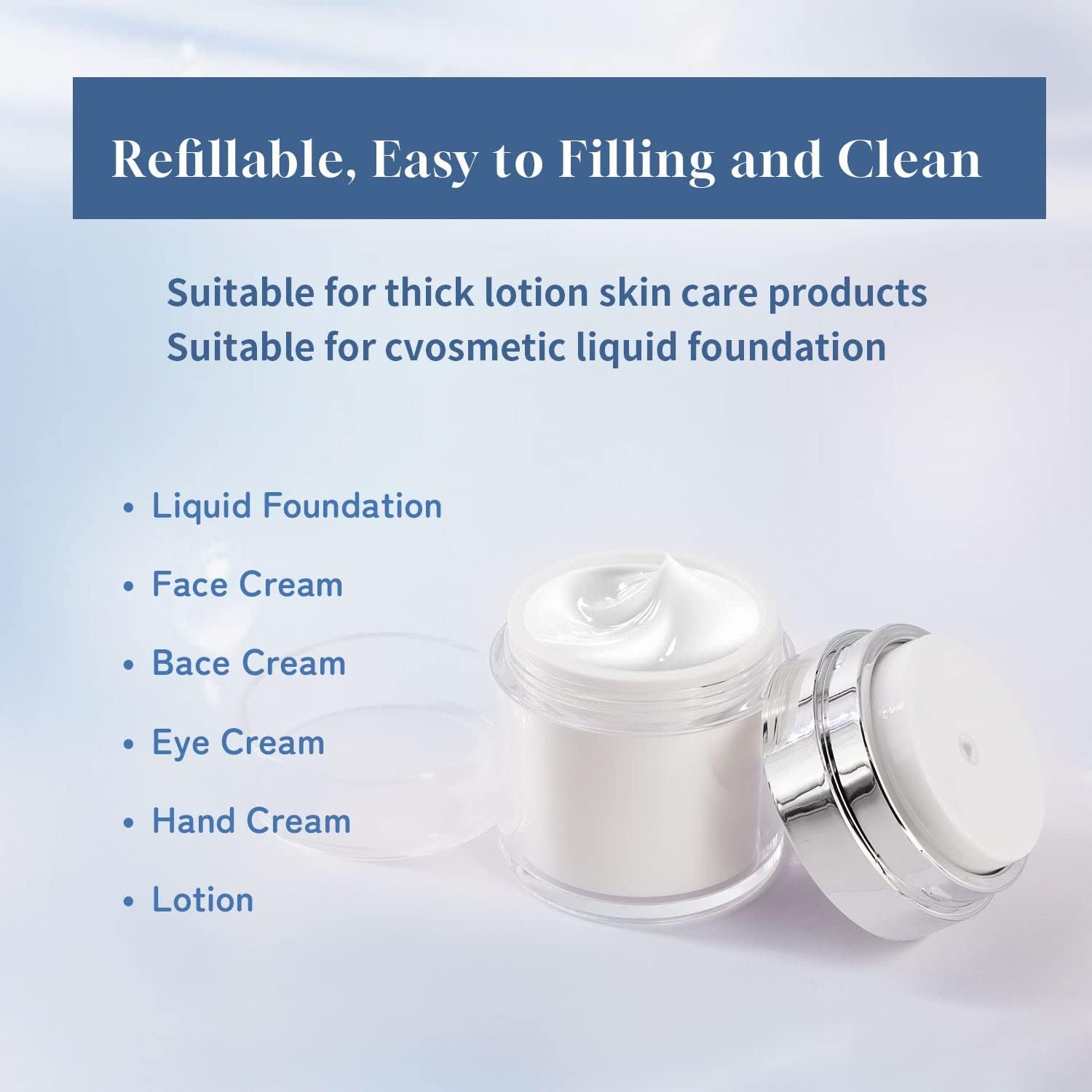 - Easy to Use: just initially fill your jar to the top with the product to get the vacuum, When pressed, the plunger will push the product up and out of the top. Perfect use for foundations, creams, essential oil, skin care items, moisturizers and so on.